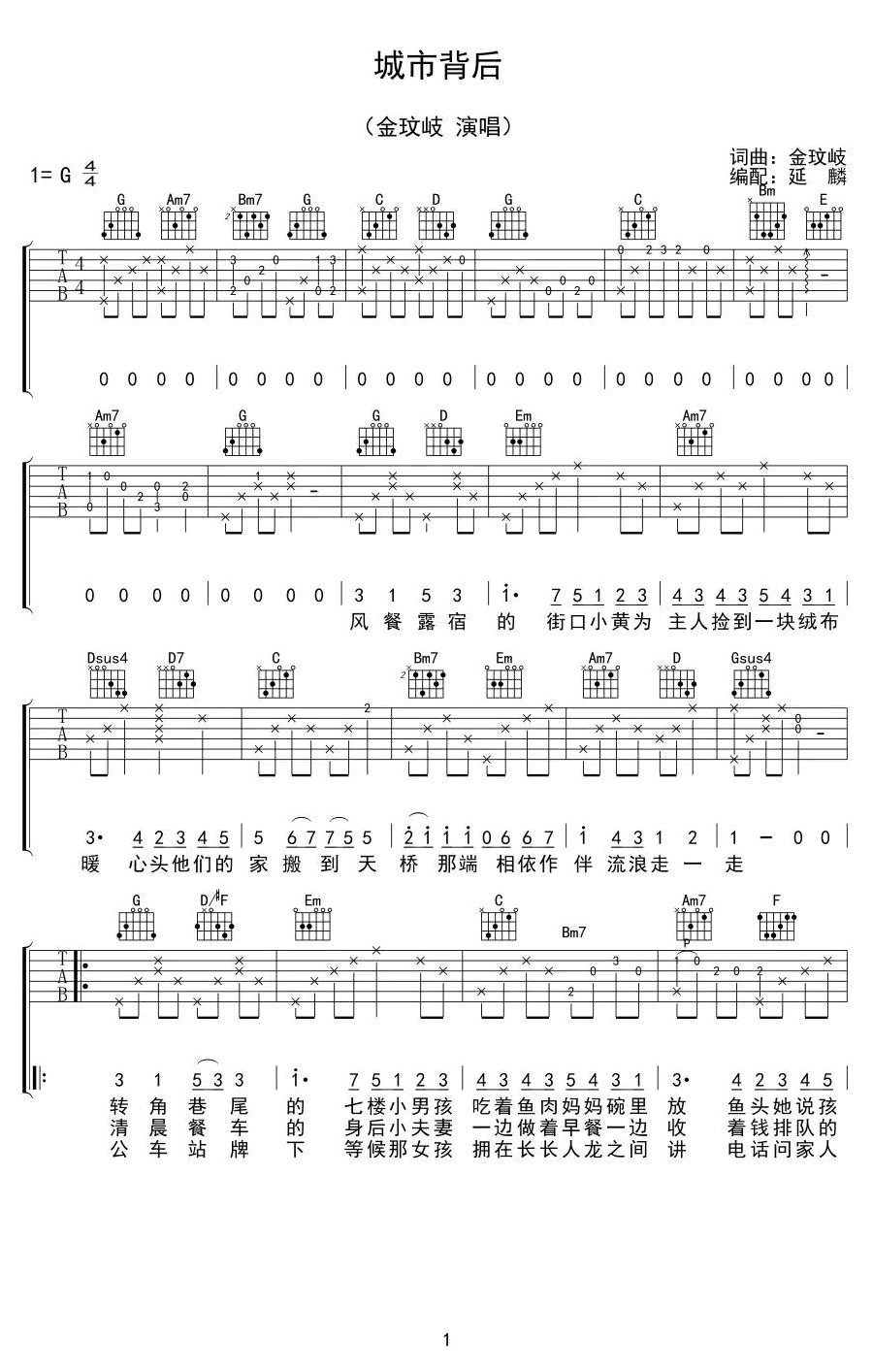 城市背后吉他谱 - 金玟岐 - G调吉他弹唱谱