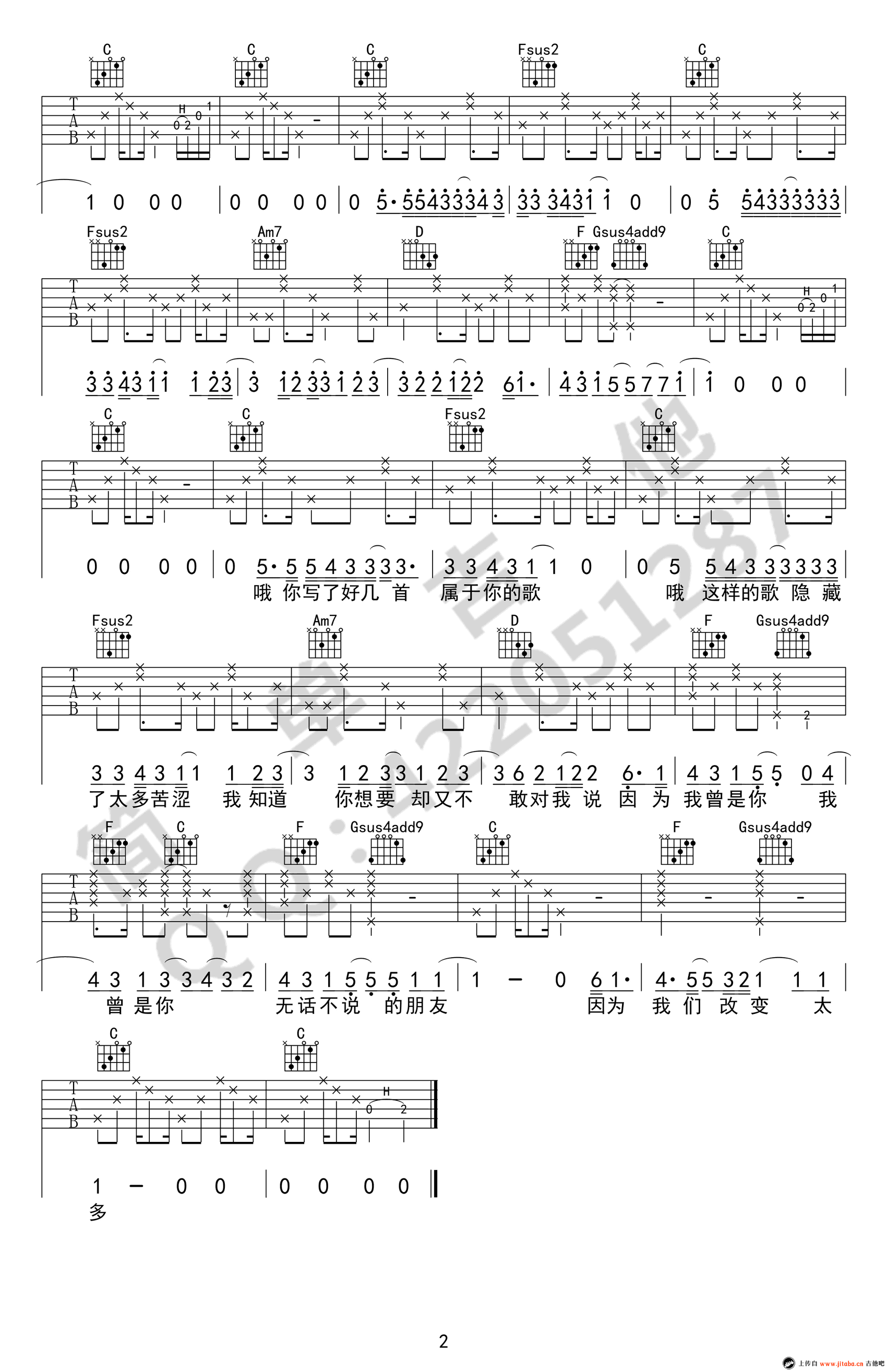 吉他弹唱C调来源:良好市民201 浏览2024-02-23 08:01发布图谱共2页