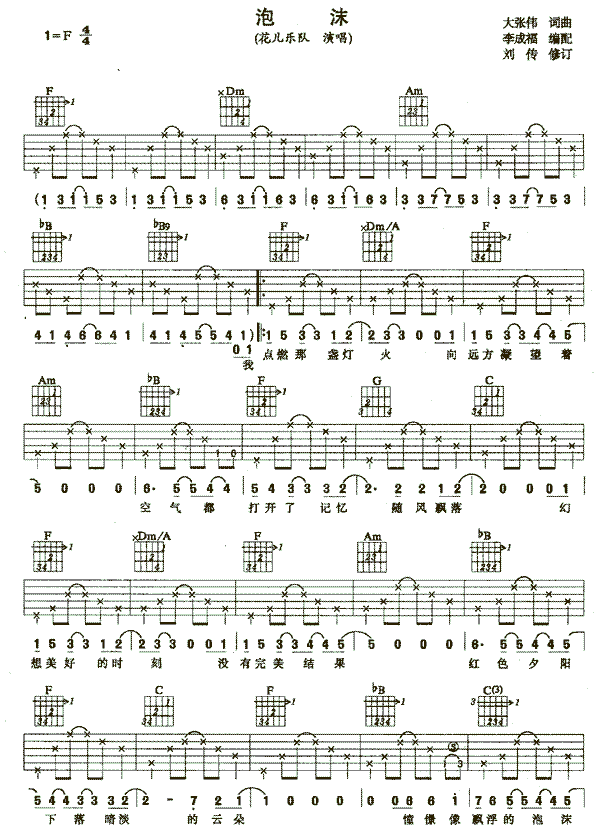 曲谱介绍: 《泡沫》吉他弹唱谱,共有4张高清图谱。