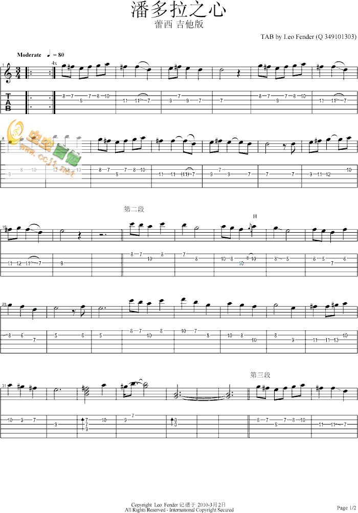 潘多拉之心 蕾西 吉他版吉他谱 - 潘多拉之心 - 吉他弹唱谱