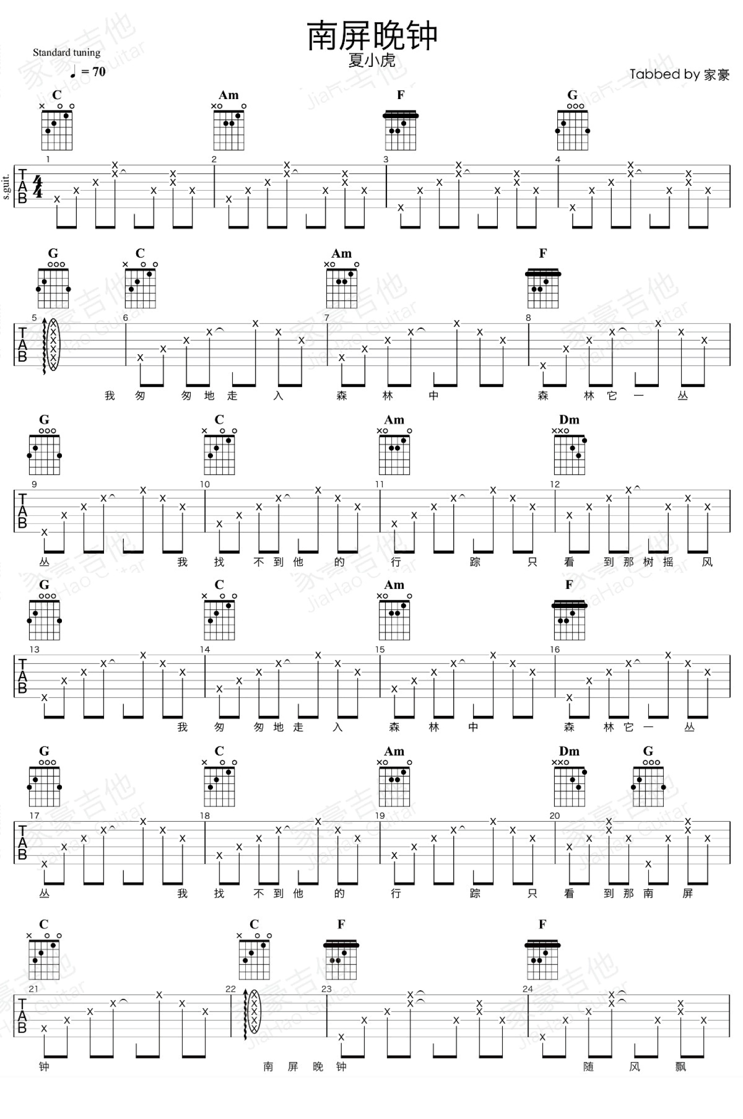南屏晚钟吉他谱 - 夏小虎 - C调吉他弹唱谱