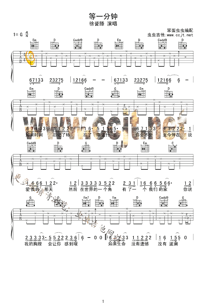 曲谱介绍: 《等一分钟》吉他弹唱谱,共有3张高清图谱。