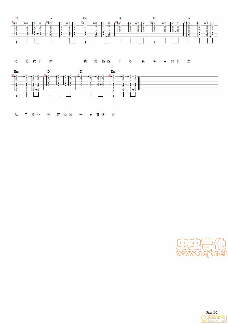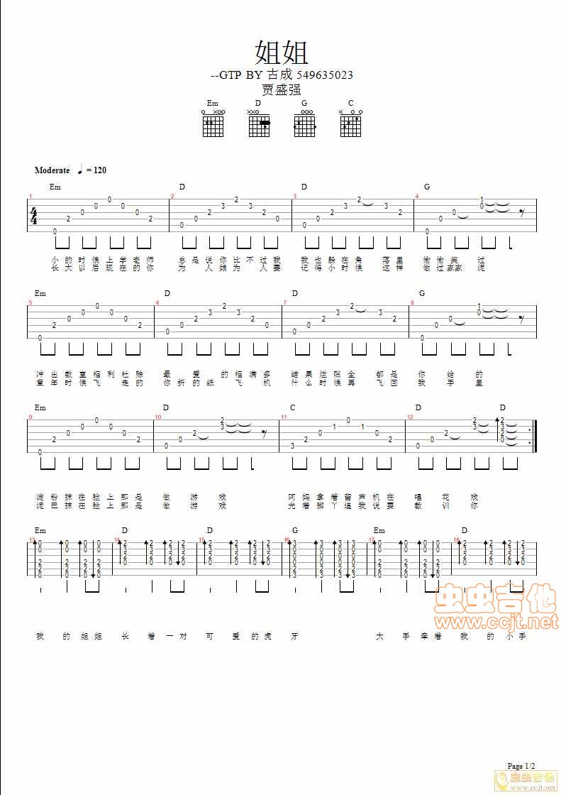 曲谱介绍: 姐姐《姐姐贾盛强GTP》吉他弹唱谱,共有2张高清图谱,免翻页排版设计。