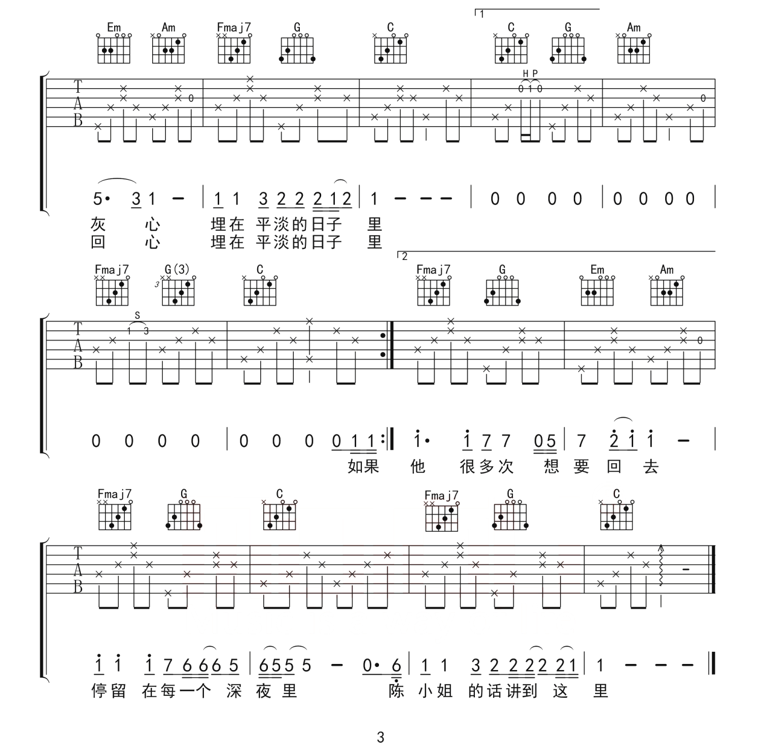当前位置:琴谱网>吉他弹唱>陈小姐的话