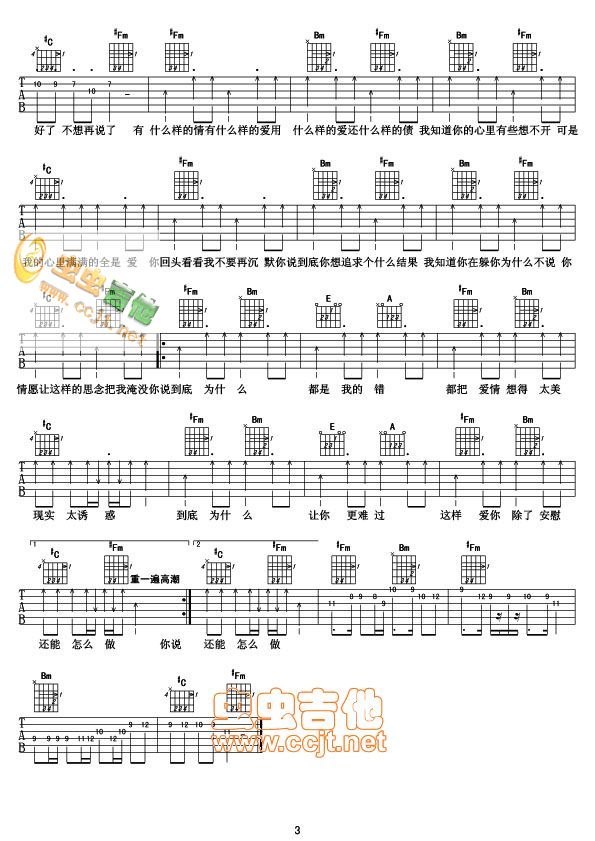 曲谱介绍: 凤凰传奇《全是爱》吉他弹唱谱,共有3张高清图谱。