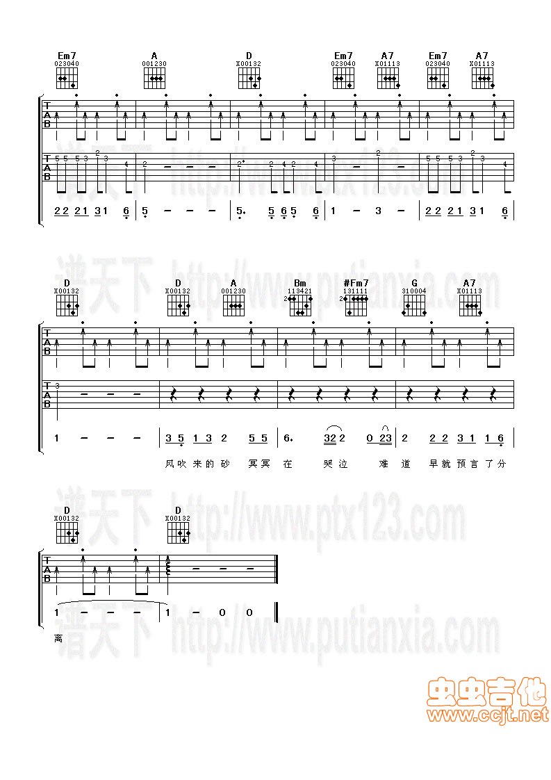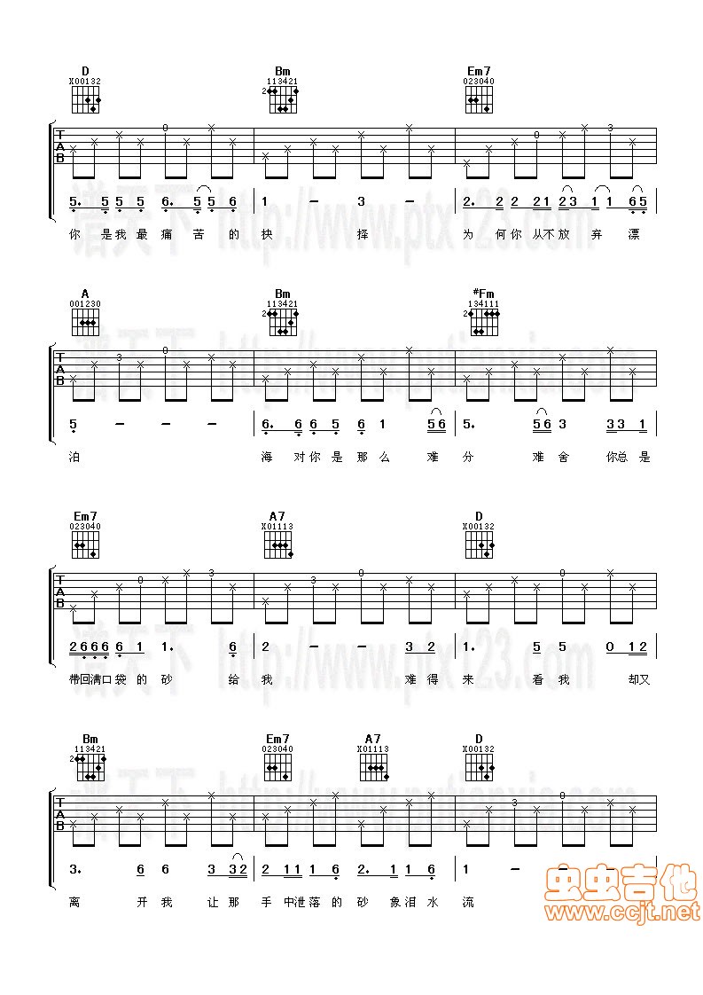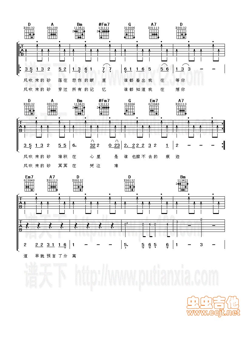 曲谱介绍: 《哭砂》吉他弹唱谱,共有4张高清图谱。