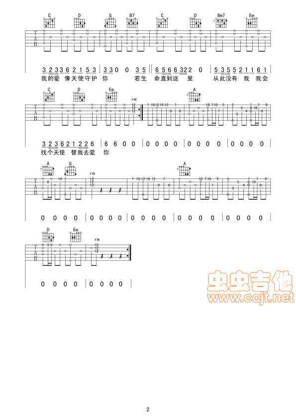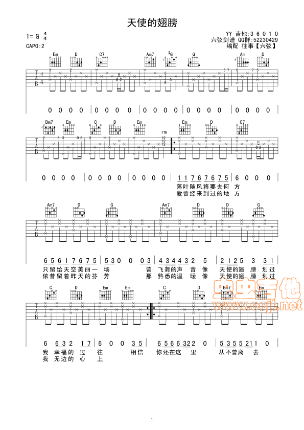 曲谱介绍: 《天使的翅膀》吉他弹唱谱,共有2张高清图谱,免翻页排版设计。