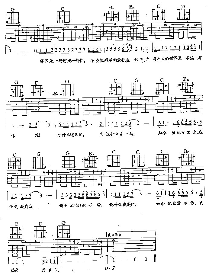 当前位置:琴谱网>吉他弹唱>一场游戏一场梦