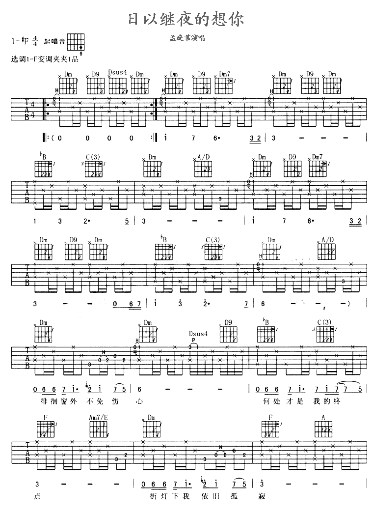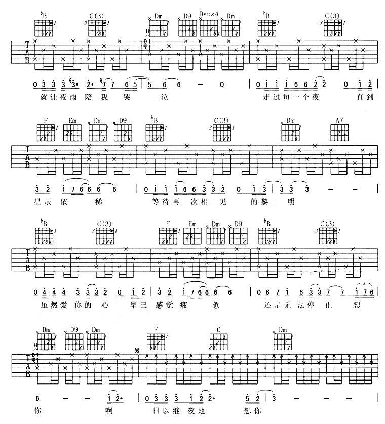 日以继夜的想你吉他谱 - 吉他弹唱谱