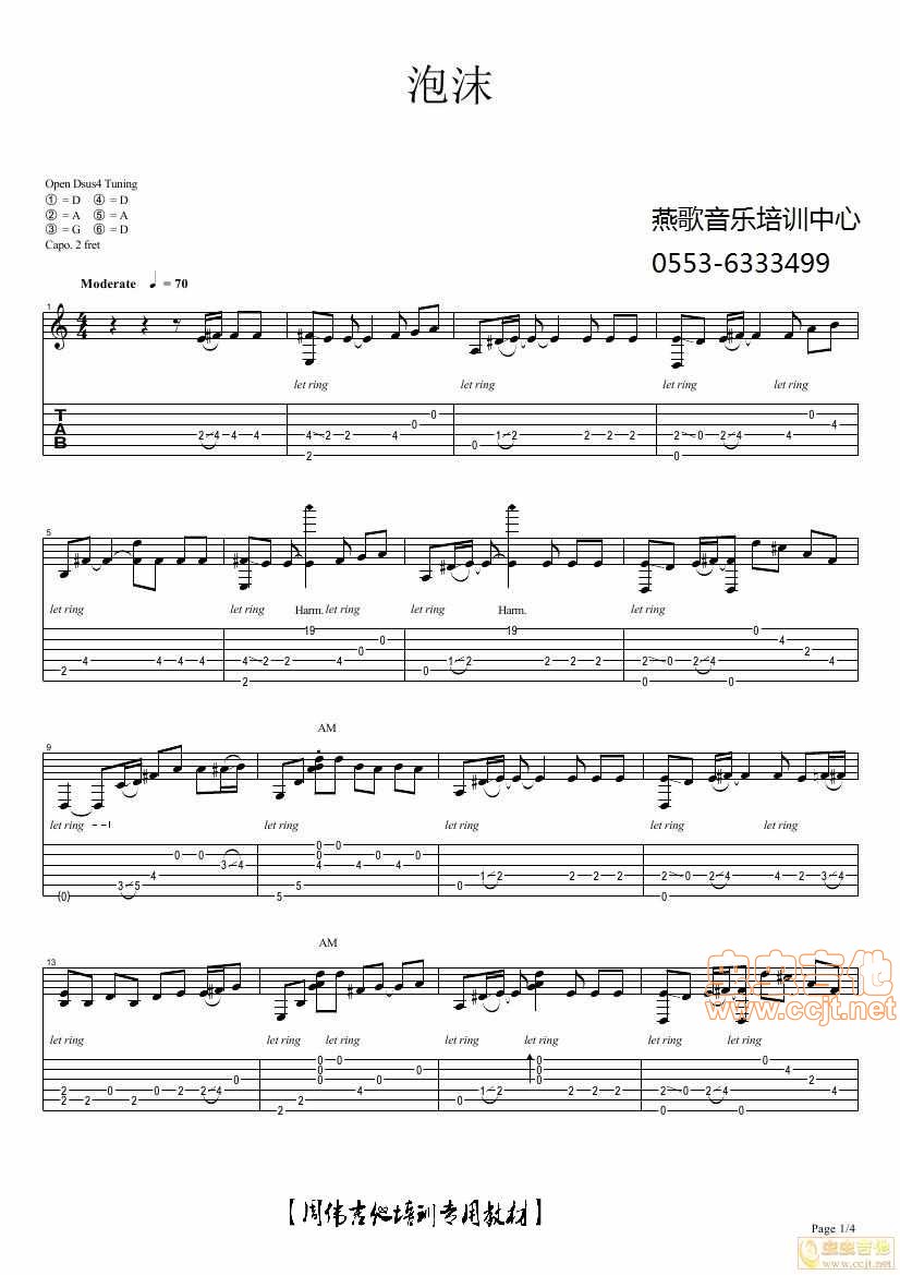 曲谱介绍: 《泡沫(》吉他独奏谱,共有4张高清图谱。