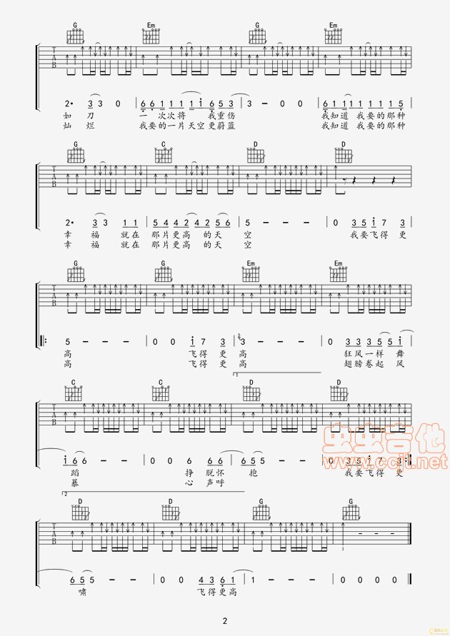 飞得更高吉他谱 - 弦心距音乐 - 吉他弹唱谱