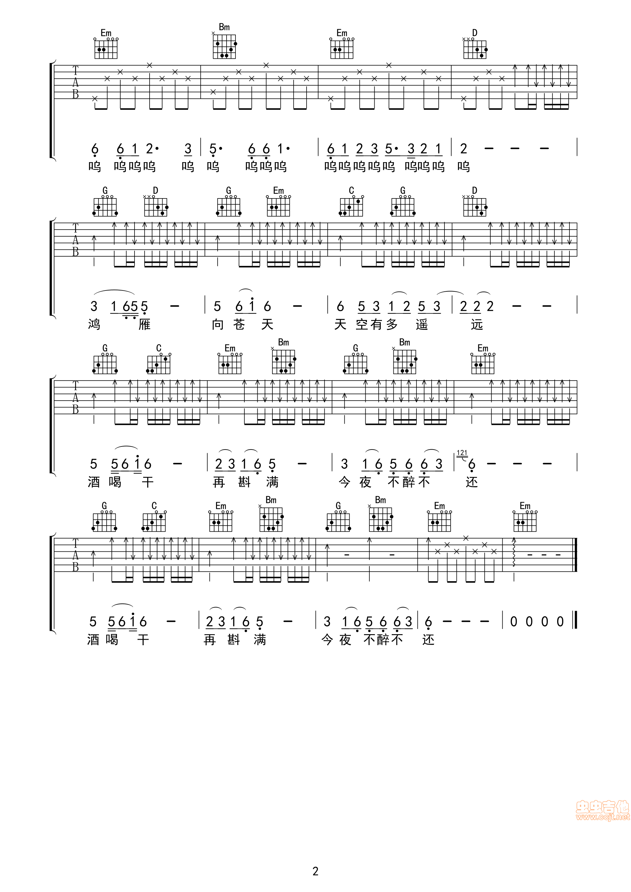鸿雁 中国好声音 云杰吉他谱 - 鸿雁 - 吉他弹唱谱