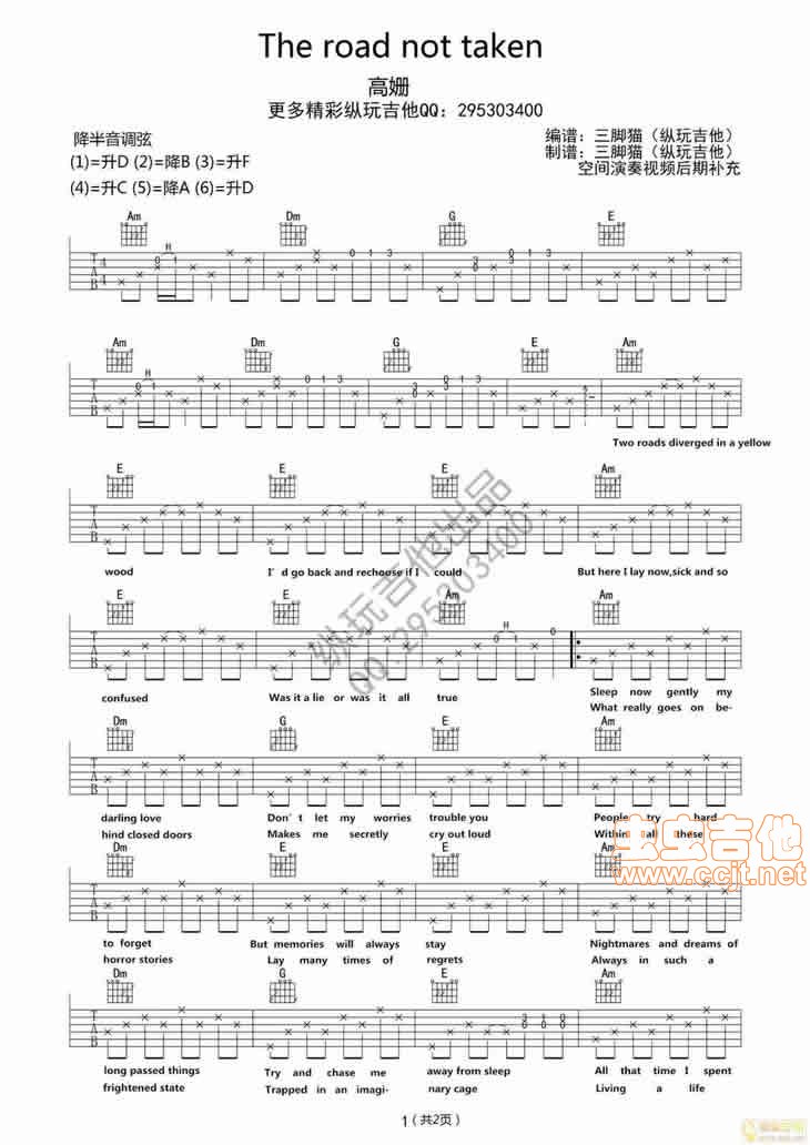 曲谱介绍: 何以笙箫默《Theroadnottaken》吉他弹唱谱,共有2张高清图谱,免翻页排版设计。