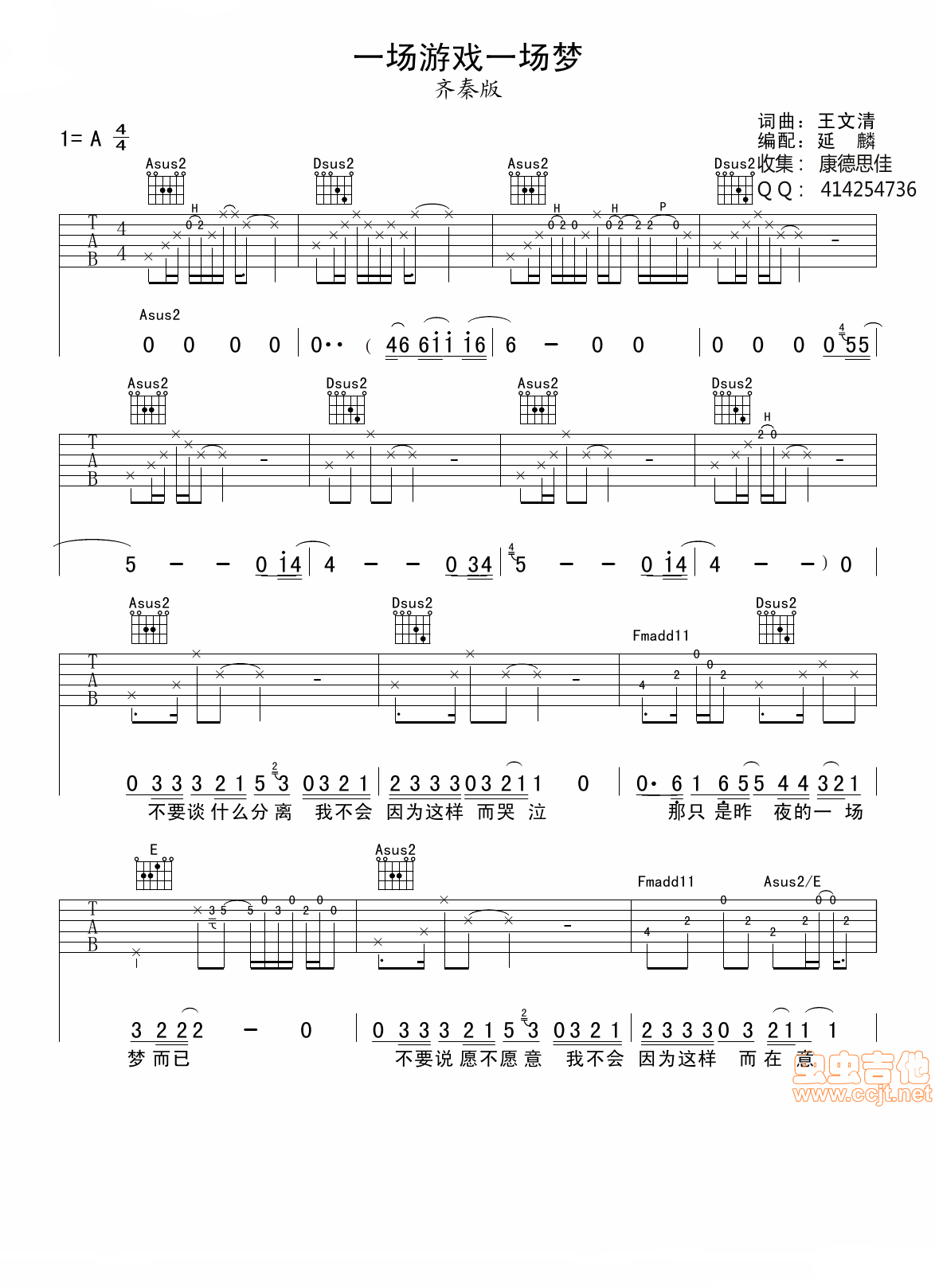 曲谱介绍: 《一场游戏一场梦》吉他弹唱谱,共有3张高清图谱。