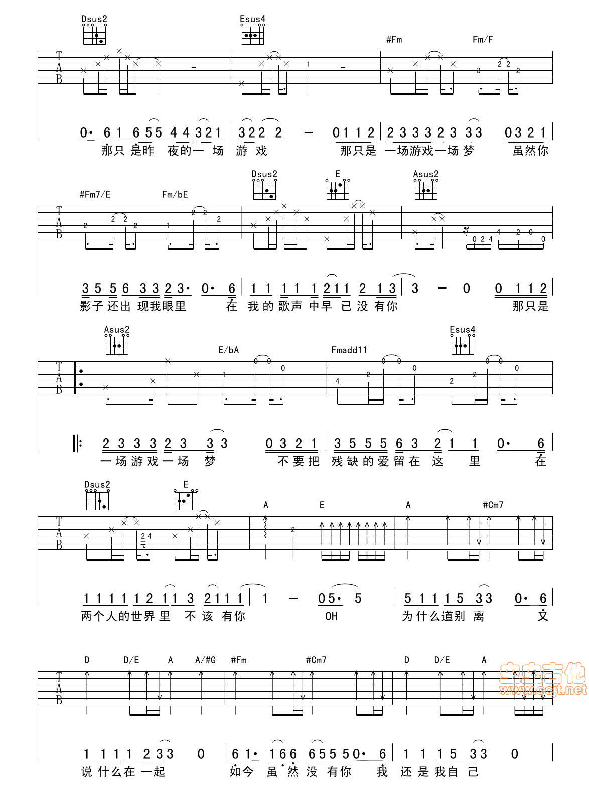 当前位置:琴谱网>吉他弹唱>一场游戏一场梦