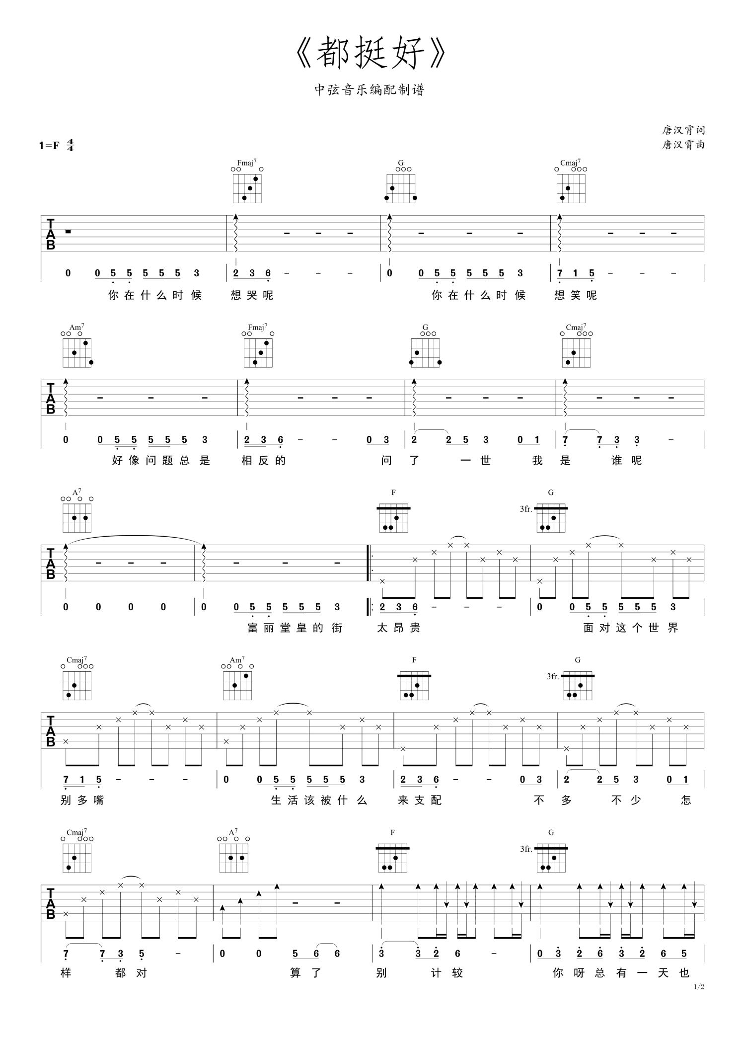 都挺好吉他谱 - 唐汉霄 - F调吉他弹唱谱