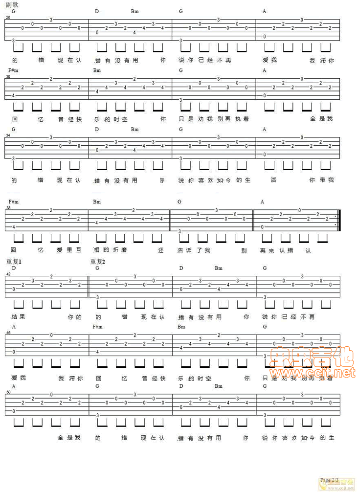 当前位置:琴谱网>吉他弹唱>认错(G调完美版)