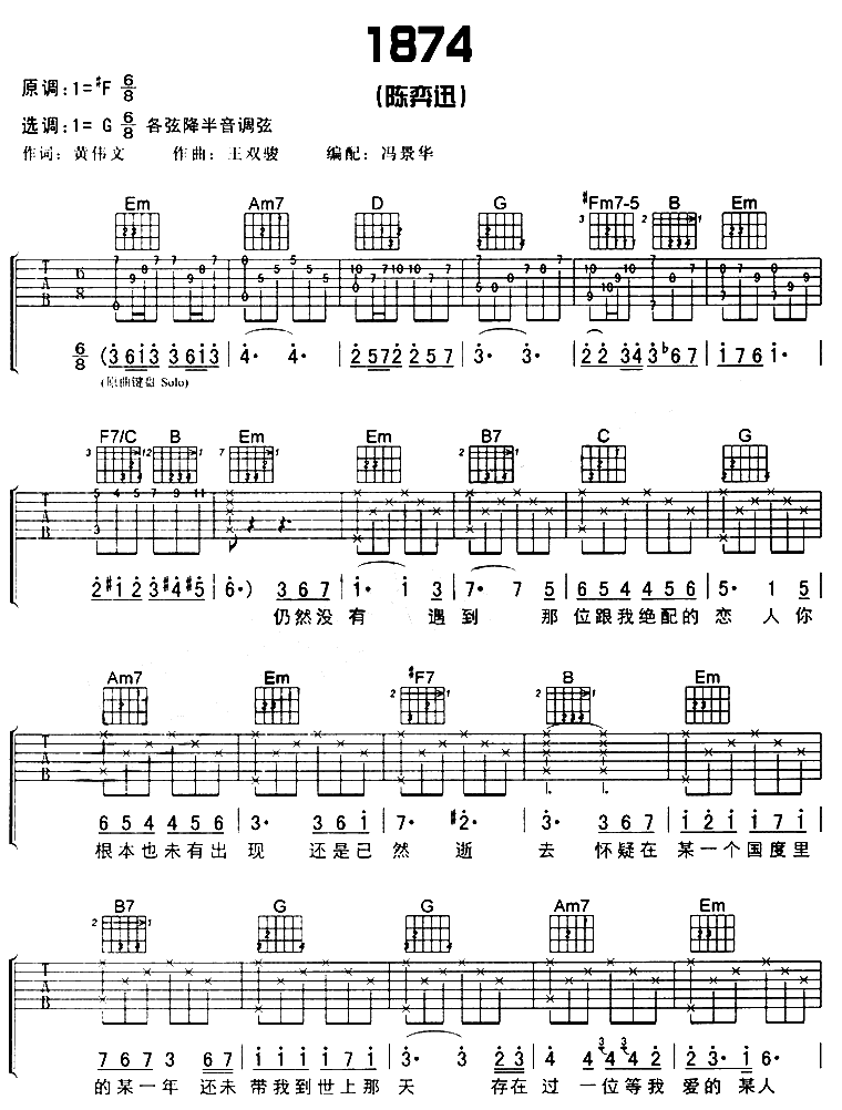 1874吉他谱 - 吉他弹唱谱
