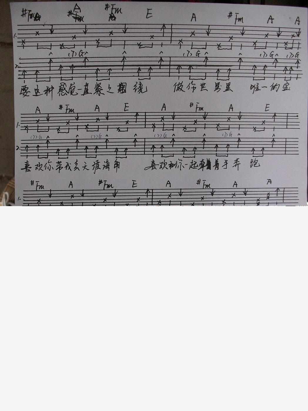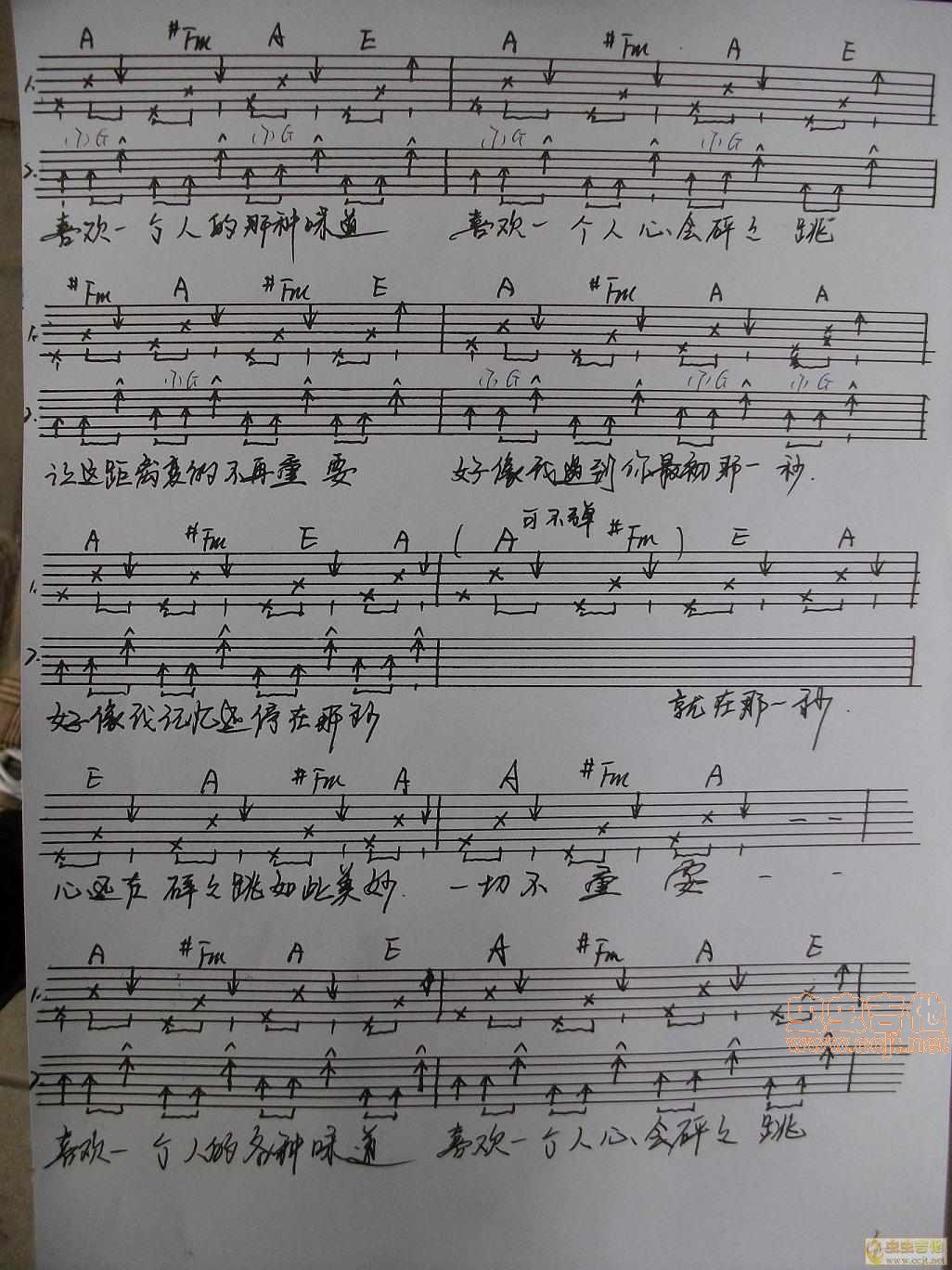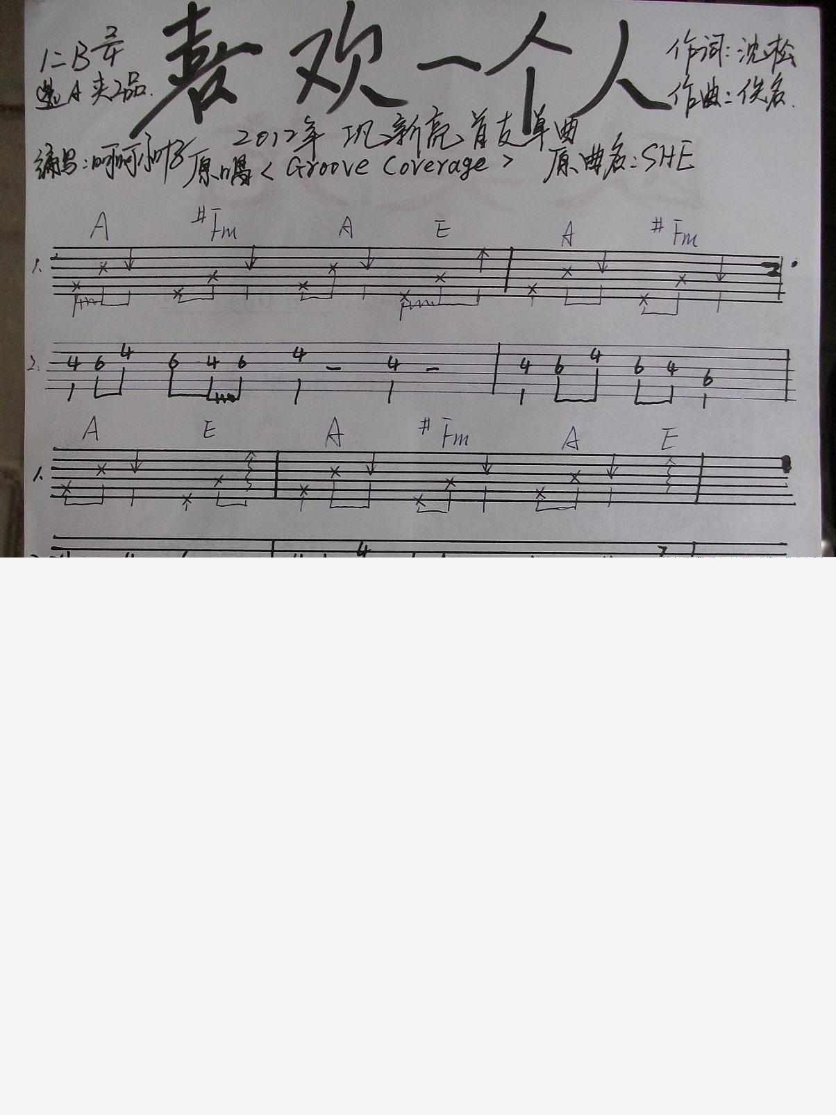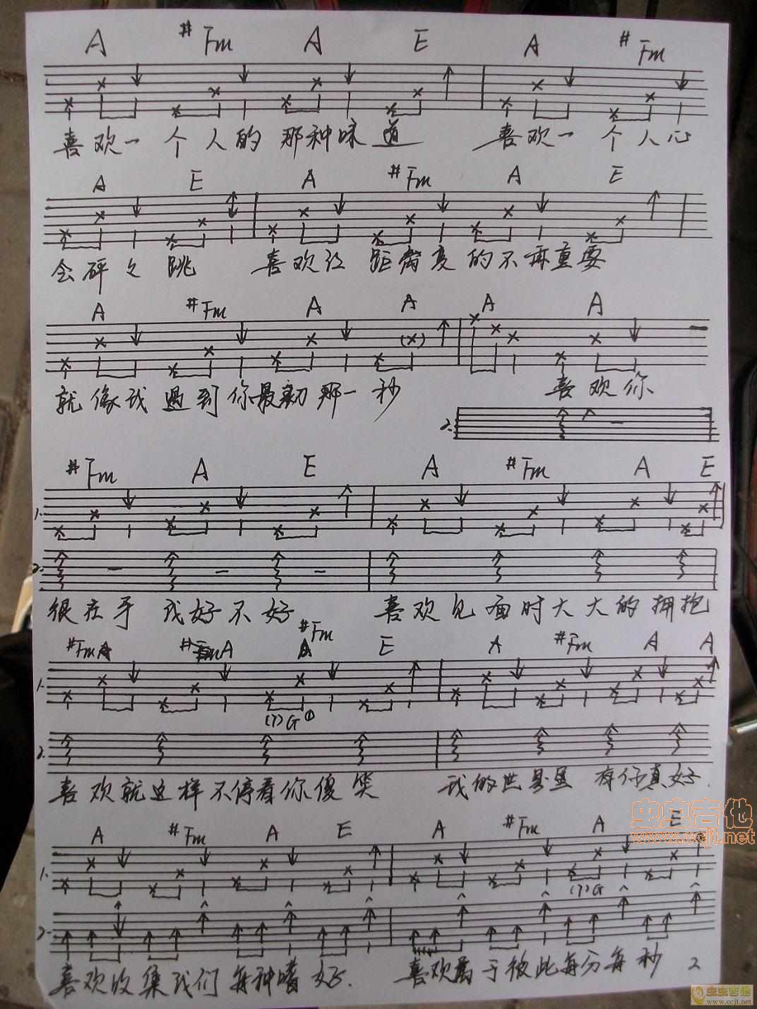 曲谱介绍: 《喜欢一个人(手工版)》吉他弹唱谱,共有5张高清图谱。