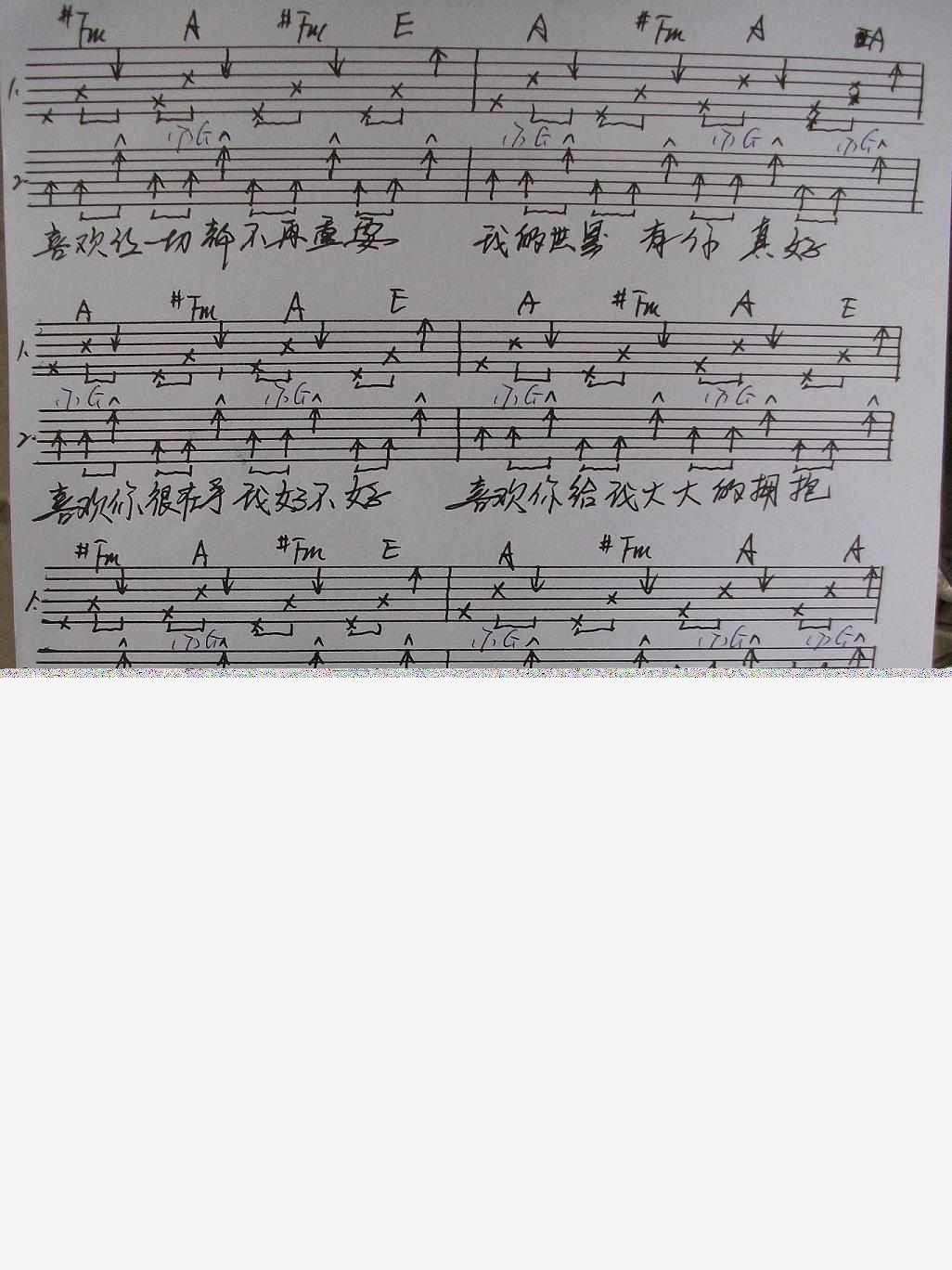 当前位置:琴谱网>吉他弹唱>喜欢一个人(手工版)