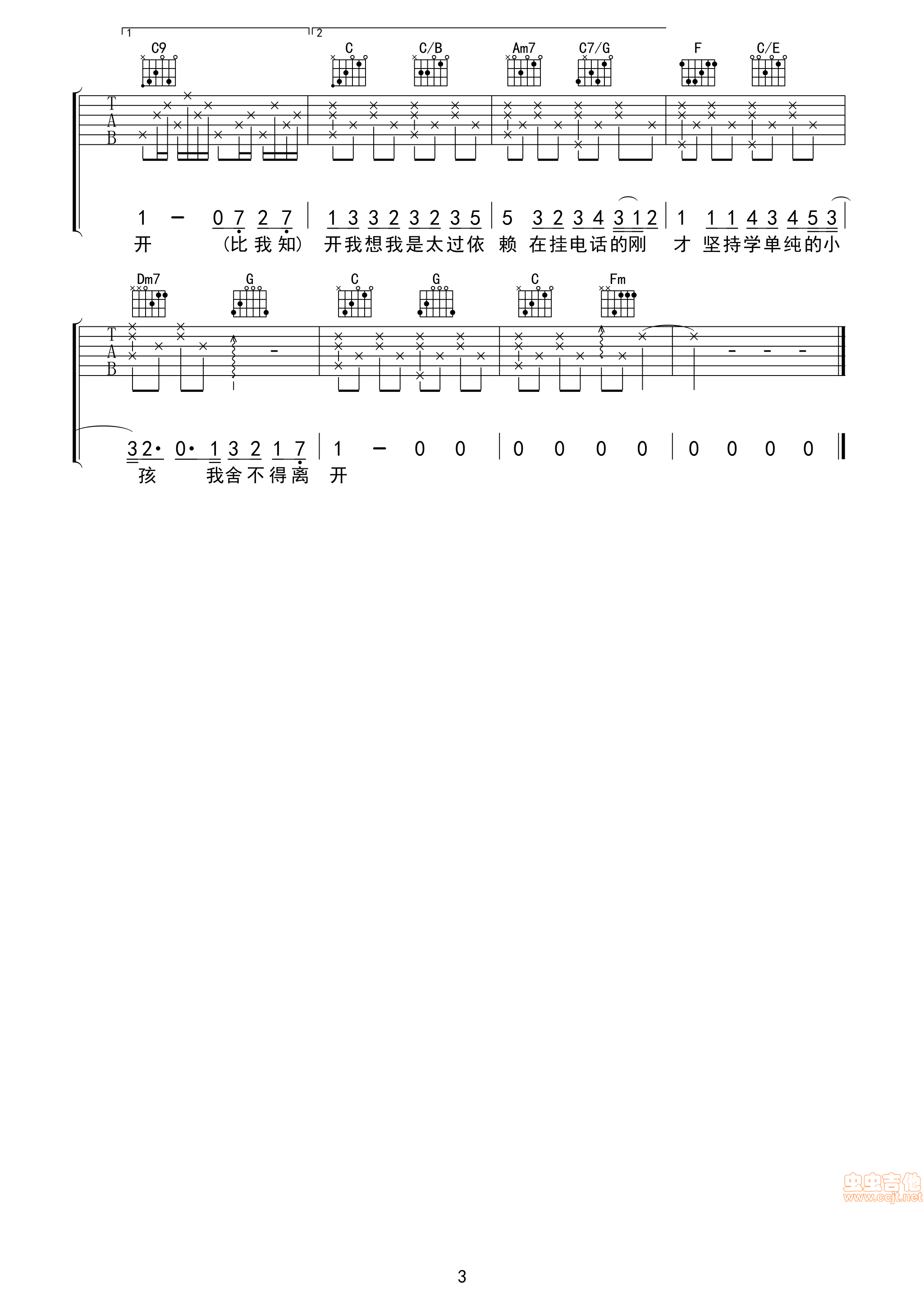 曲谱介绍: 周杰伦《你听得到》吉他弹唱谱,共有3张高清图谱。