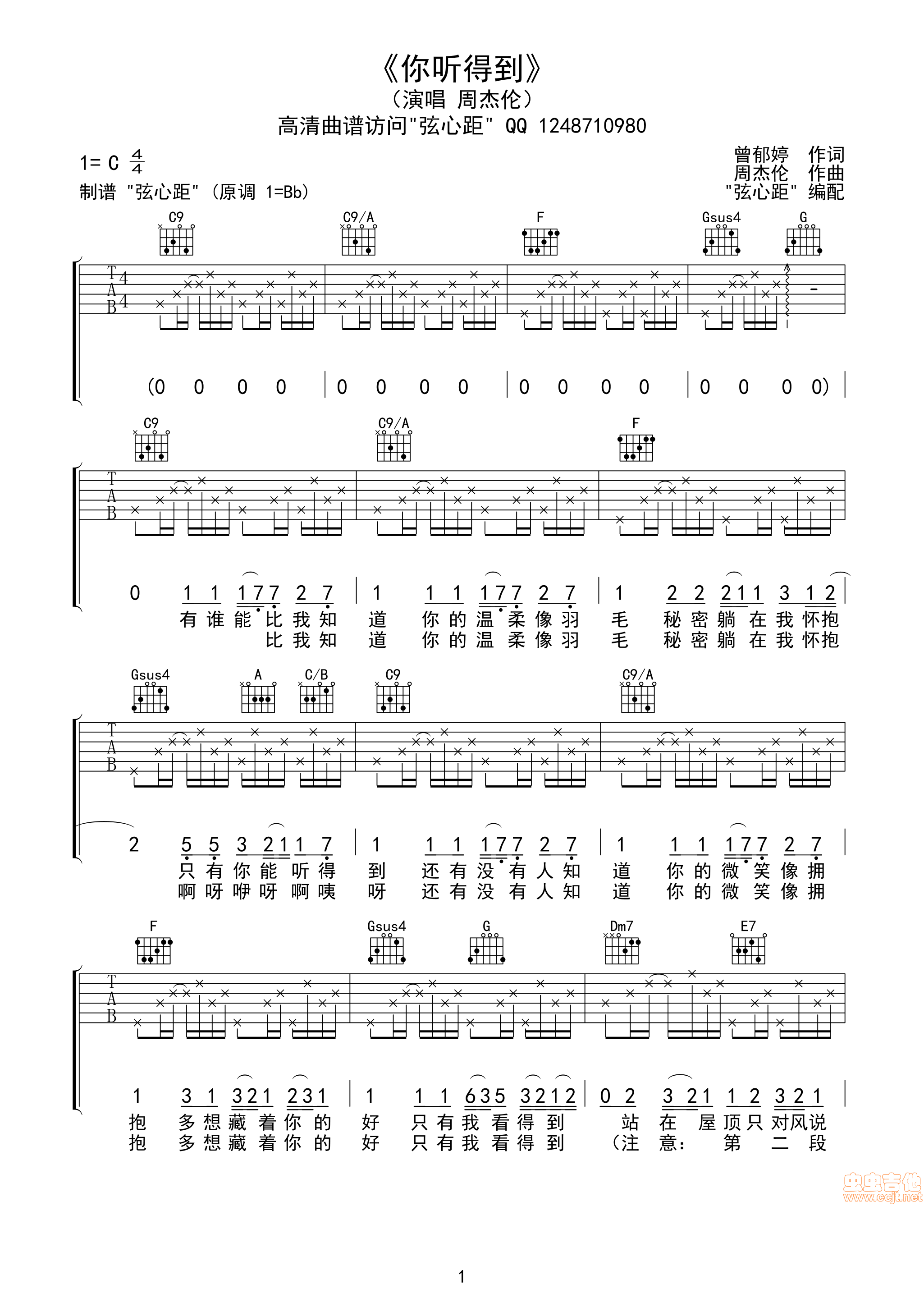 你听得到吉他谱 - 周杰伦 - 吉他弹唱谱