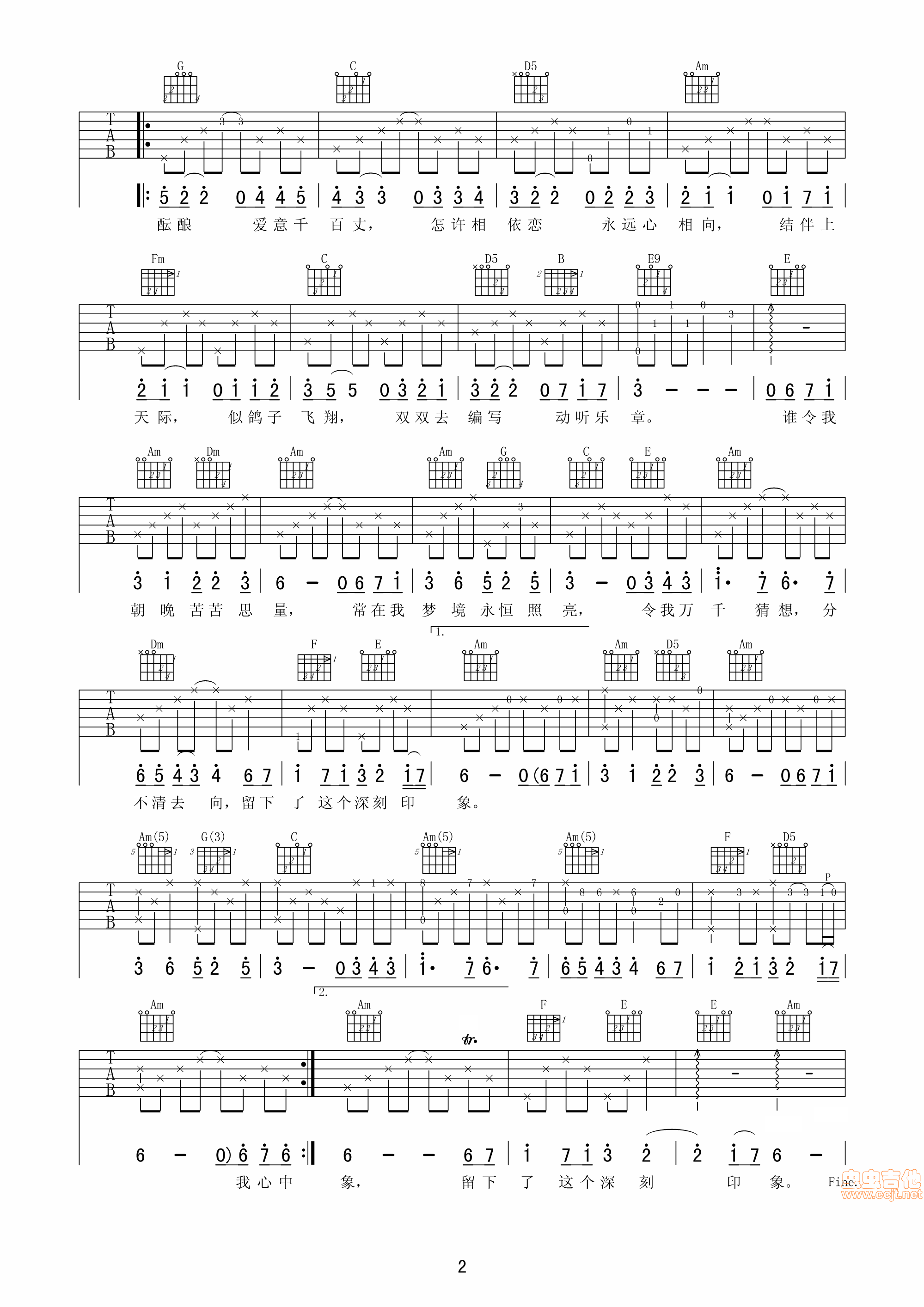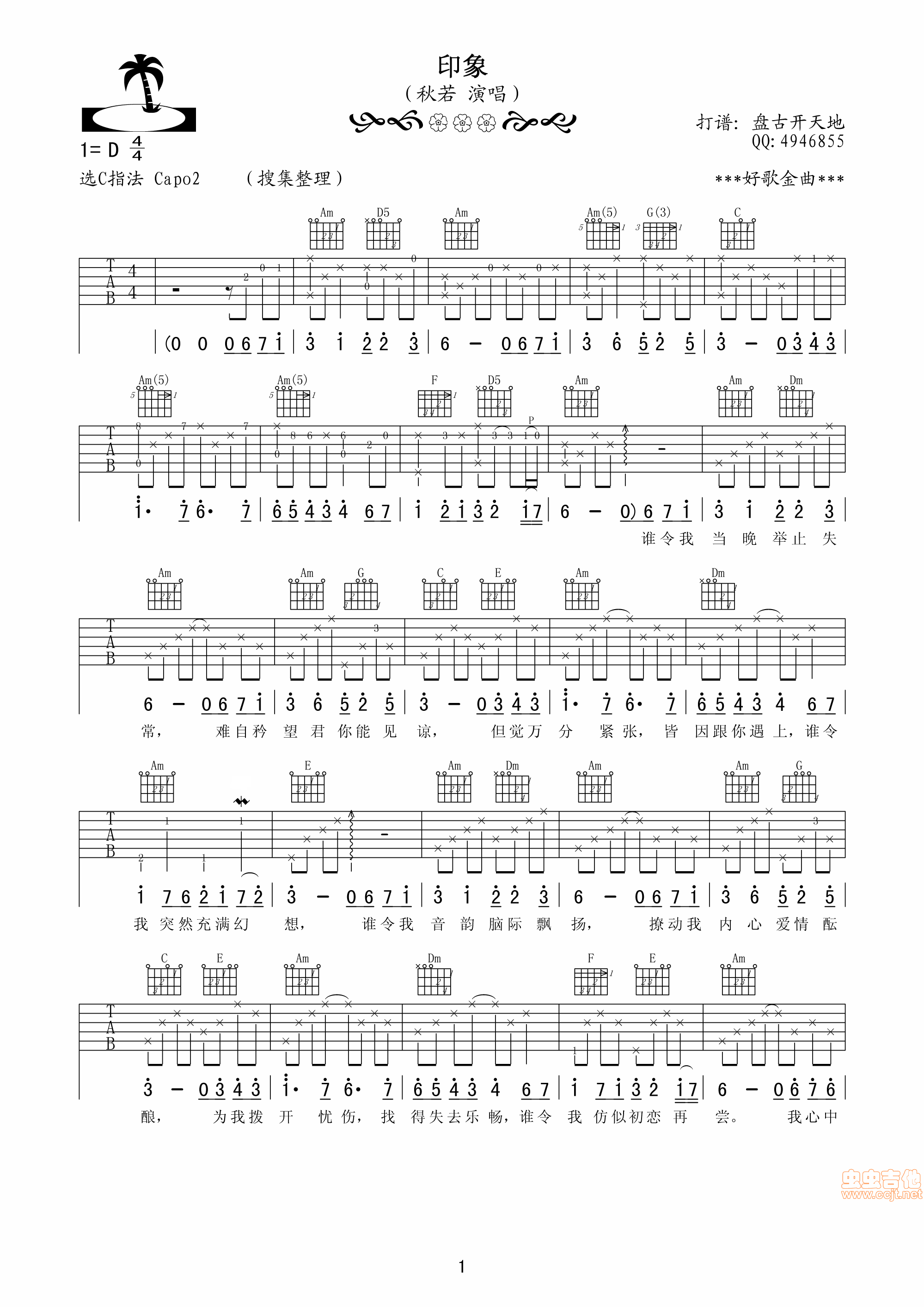 曲谱介绍: 《印象》吉他弹唱谱,共有2张高清图谱,免翻页排版设计。