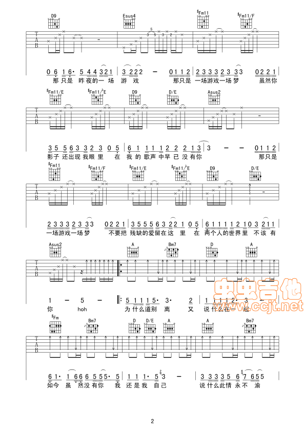 曲谱介绍: 《一场游戏一场梦(高级版)》吉他弹唱谱,共有3张高清图谱。