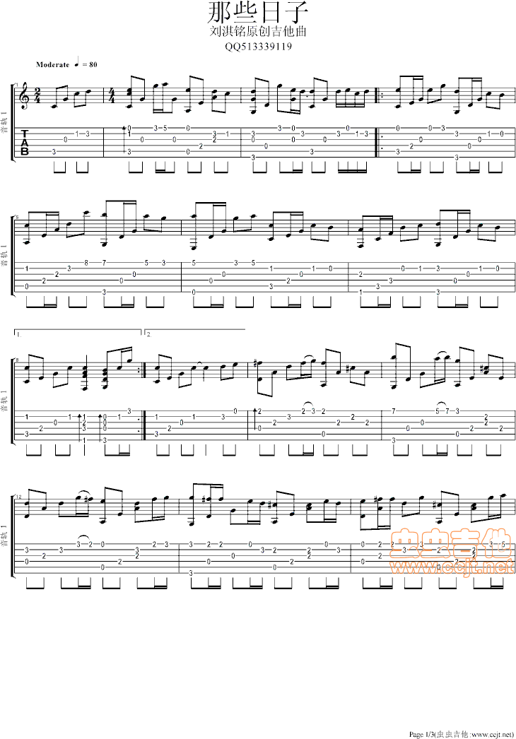 当前位置:琴谱网>吉他弹唱>那些日子(刘淇铭原创吉他曲)