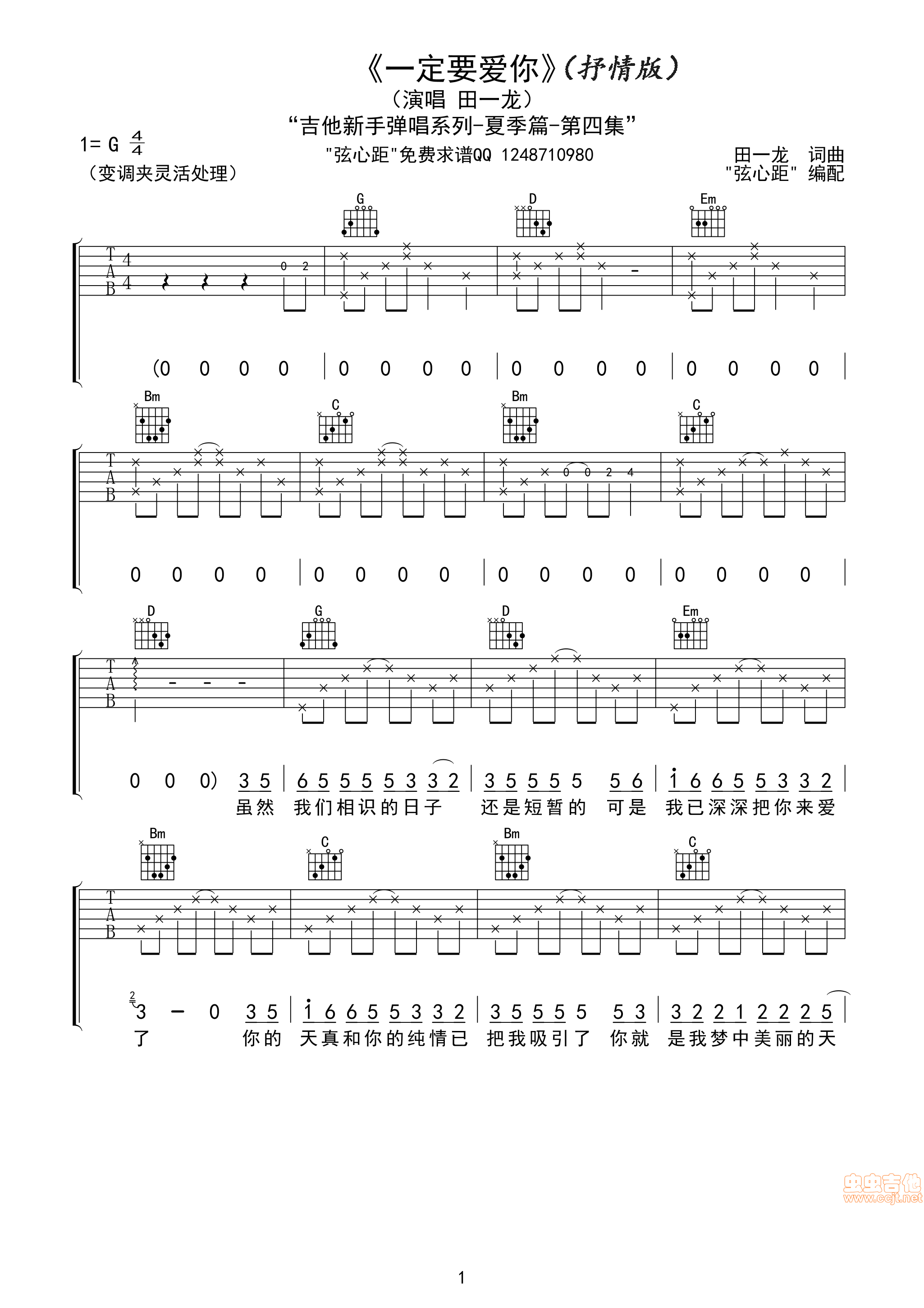 一定要爱你吉他谱 - 吉他弹唱谱
