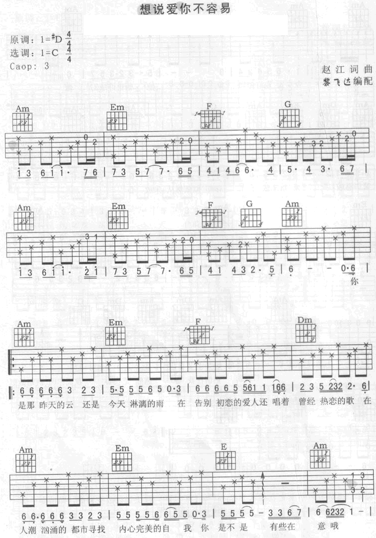想说爱你不容易吉他谱 - 吉他弹唱谱