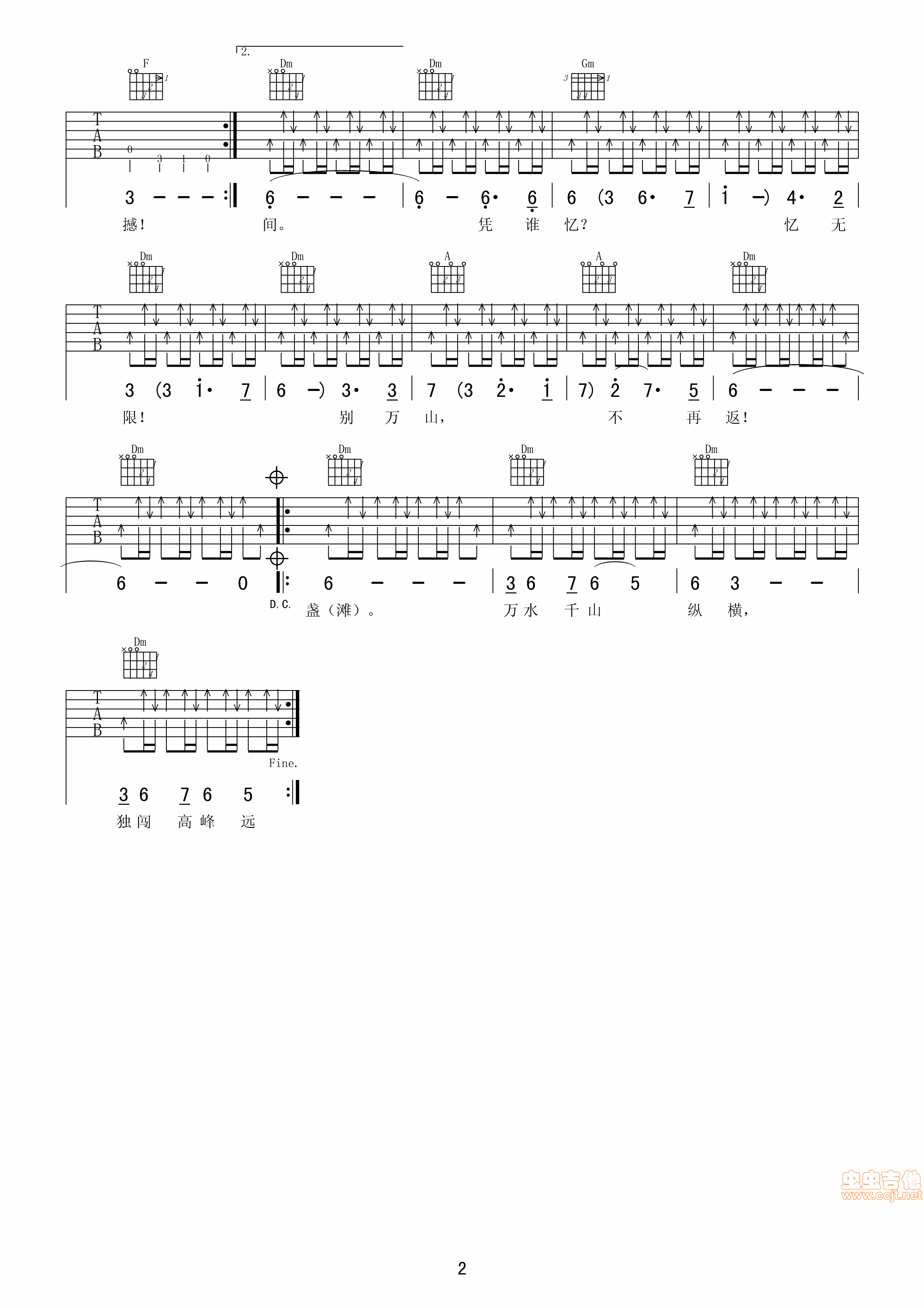 曲谱介绍: 《万水千山纵横》吉他弹唱谱,共有2张高清图谱,免翻页排版设计。