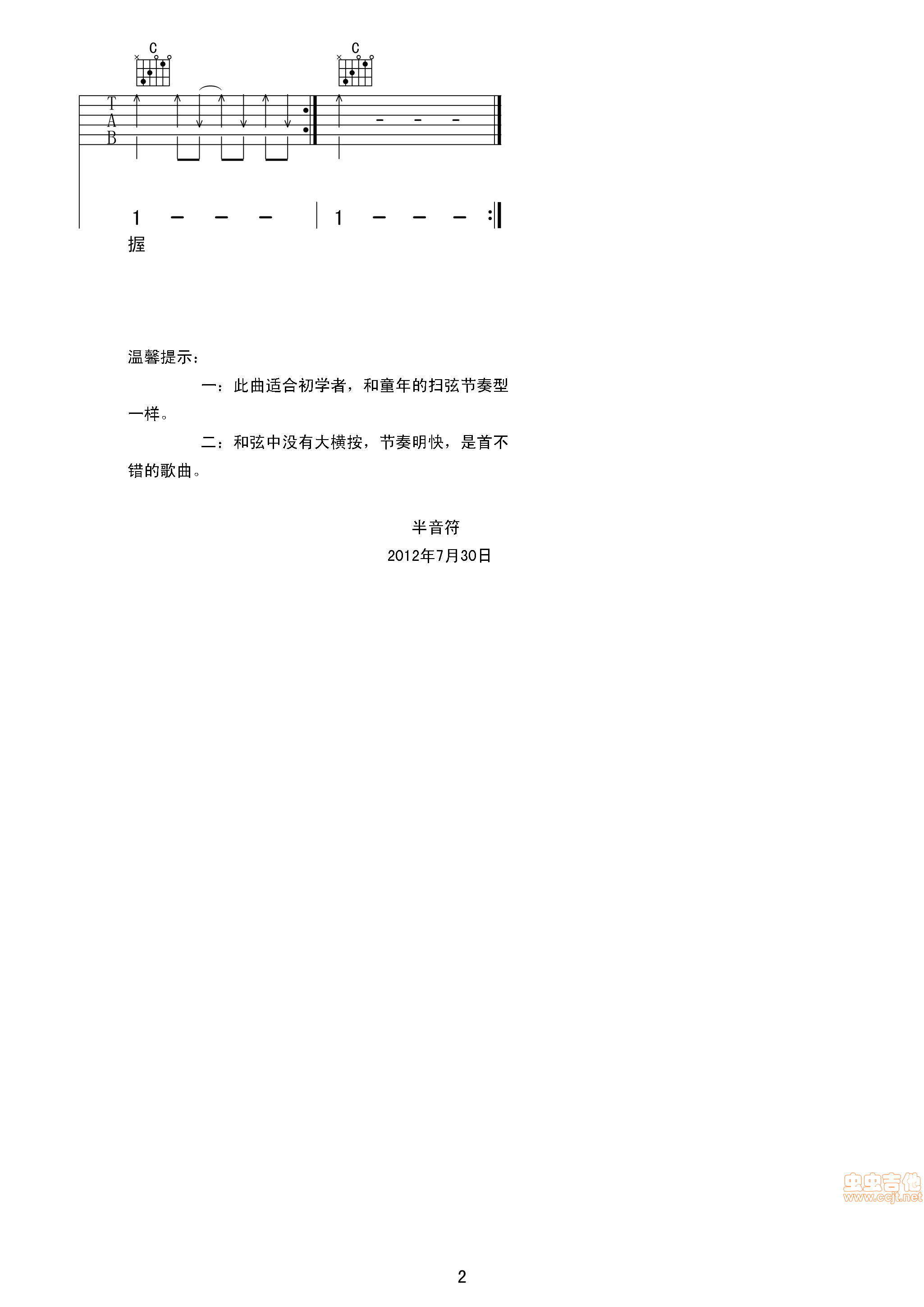 曲谱介绍: 《欢乐年华》吉他弹唱谱,共有2张高清图谱,免翻页排版设计。