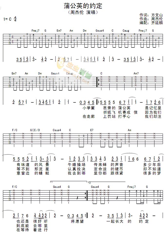 当前位置:琴谱网>吉他弹唱>蒲公英的约定
