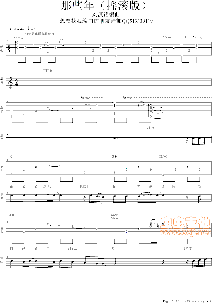 当前位置:琴谱网>吉他弹唱>那些年。摇滚版