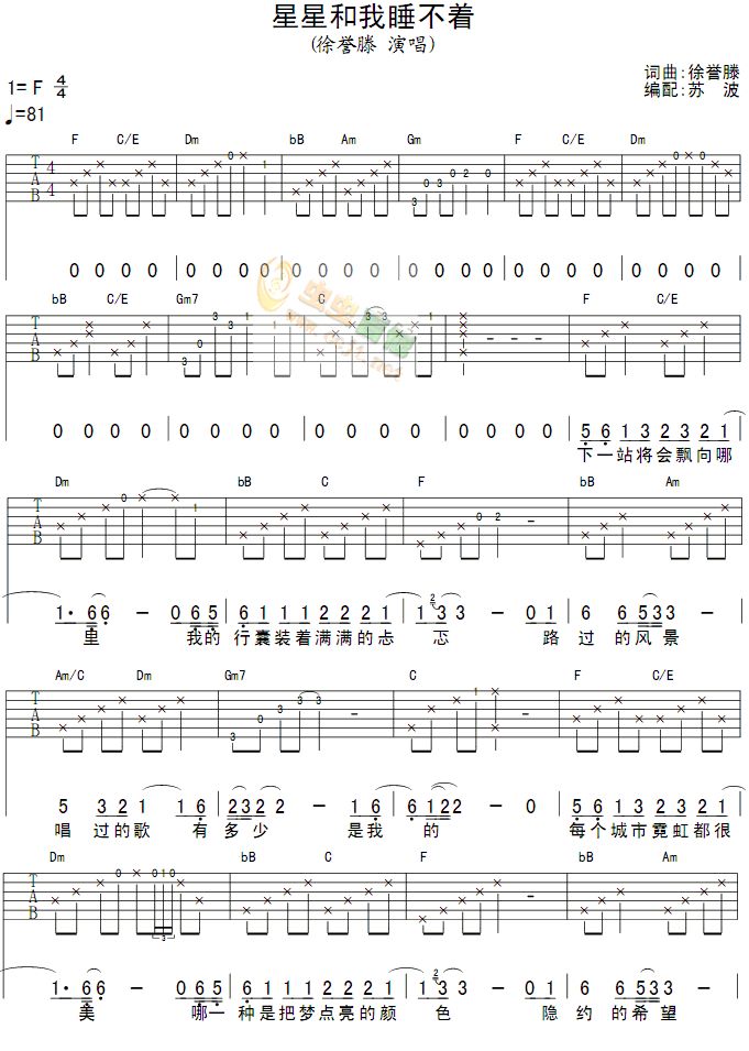 当前位置:琴谱网>吉他弹唱>星星和我睡不着