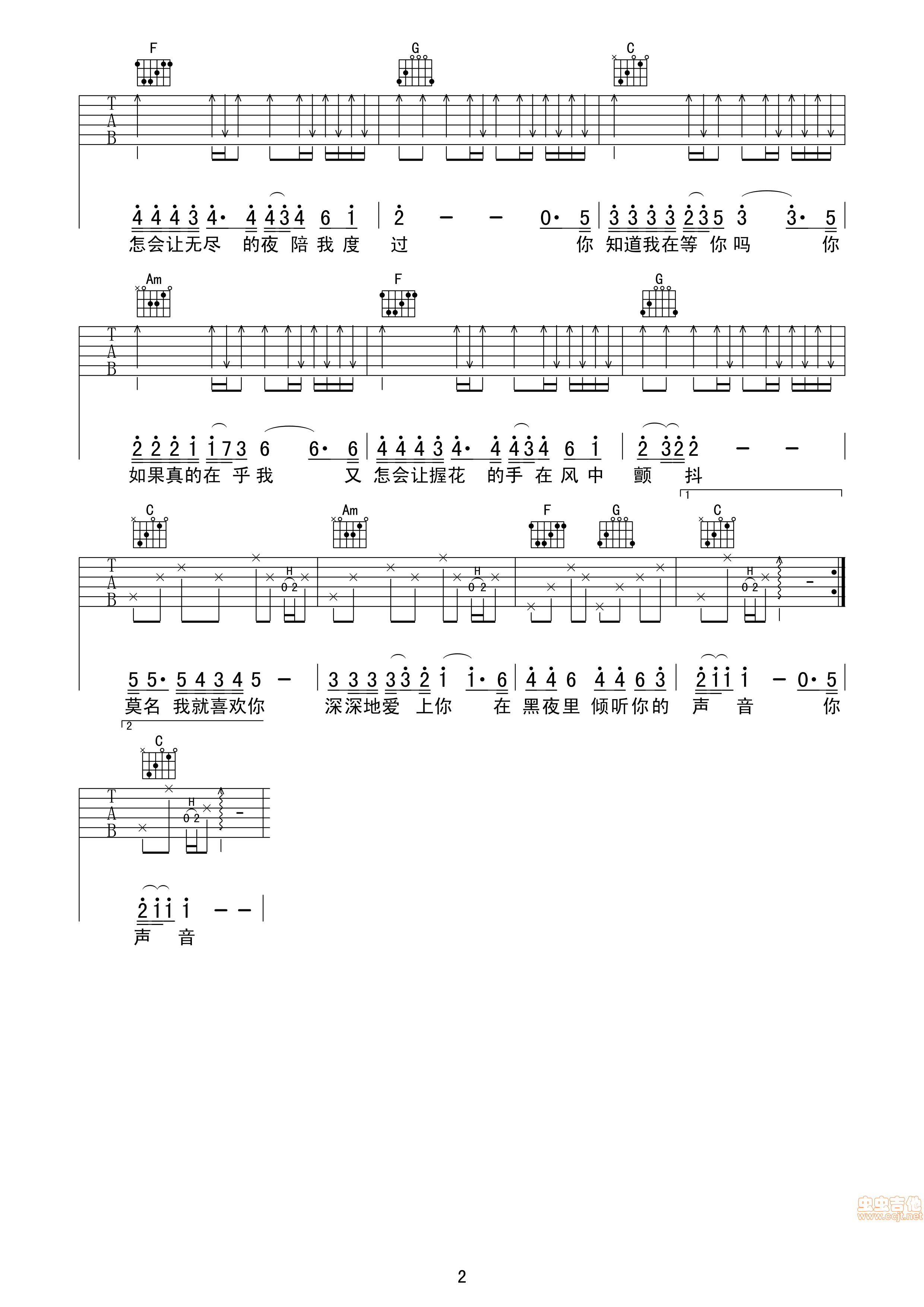 曲谱介绍: 《你知道我在等你吗》吉他弹唱谱,共有2张高清图谱,免翻页排版设计。