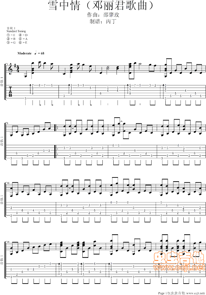 曲谱介绍: 《雪中情》吉他弹唱谱,共有2张高清图谱,免翻页排版设计。