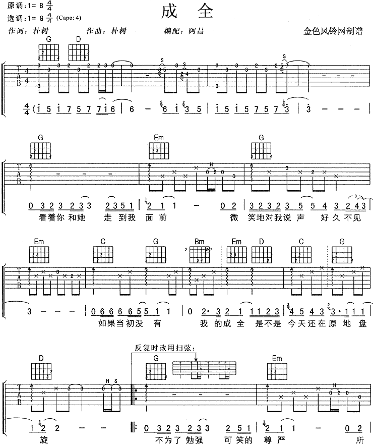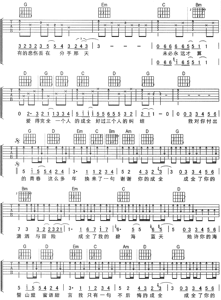 当前位置:琴谱网>吉他弹唱>成全(图片)