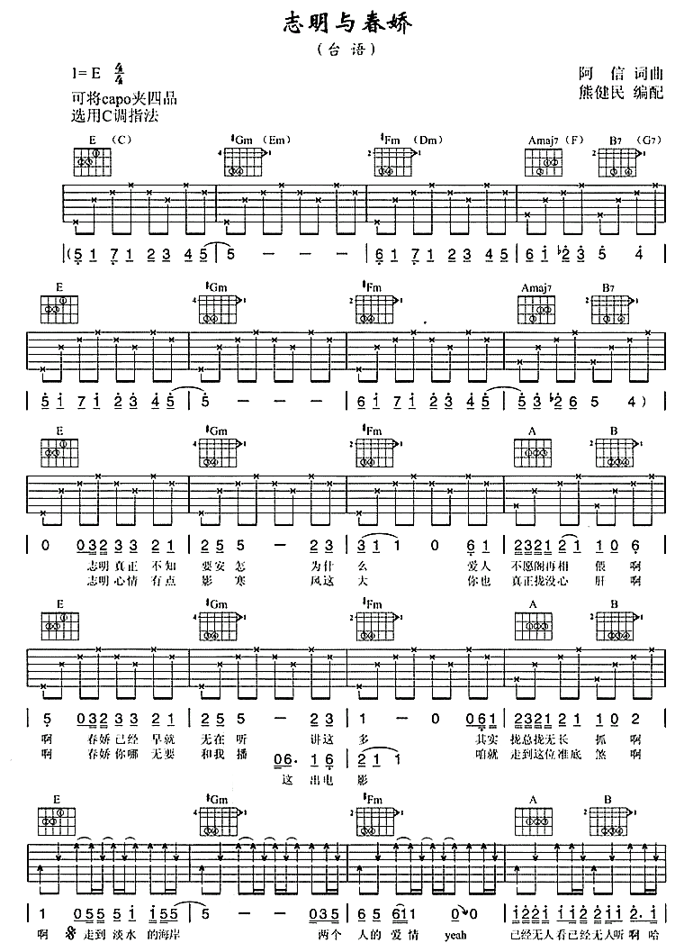志明与春娇吉他谱 - 吉他弹唱谱