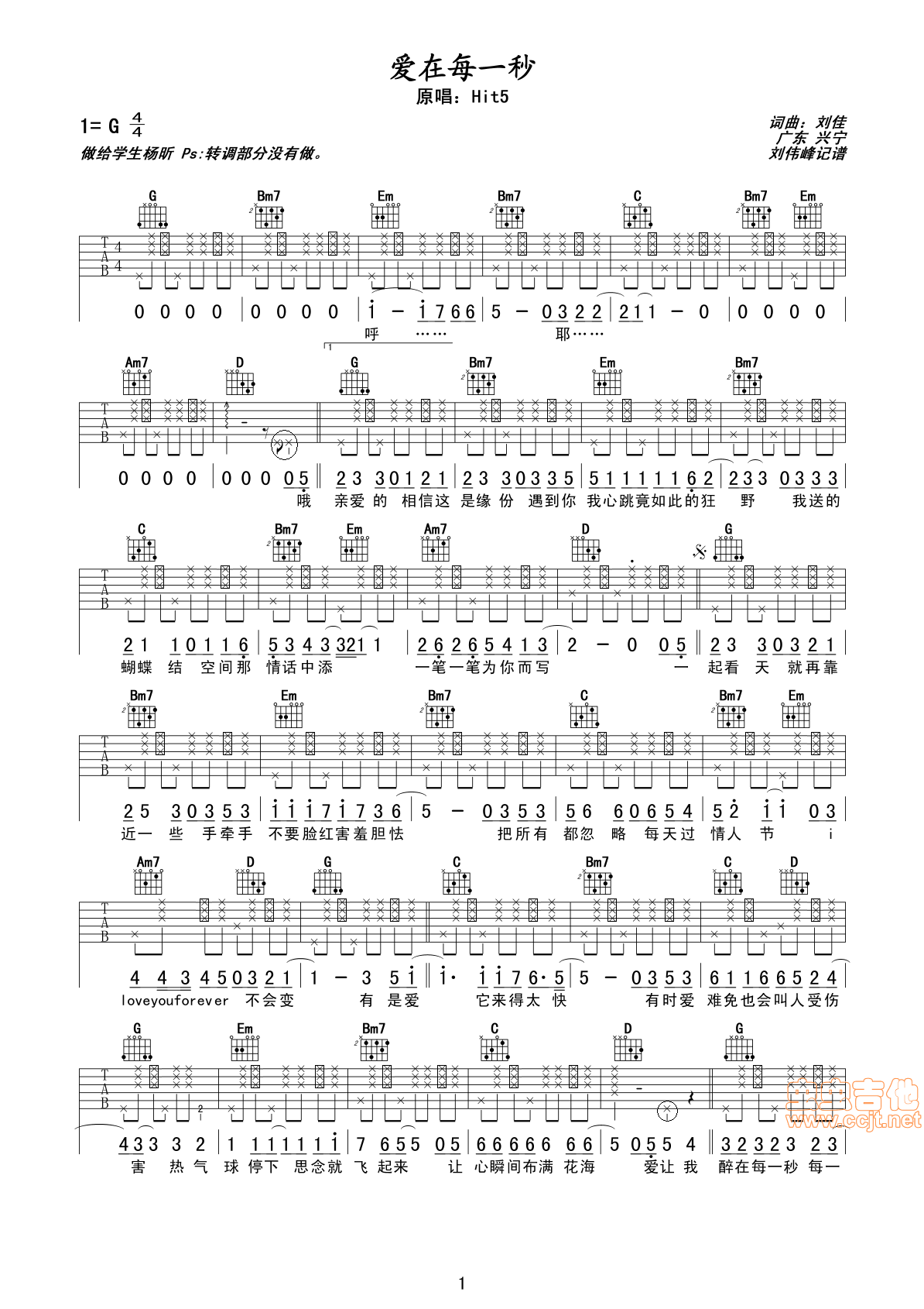 爱在每一秒吉他谱 - 吉他弹唱谱