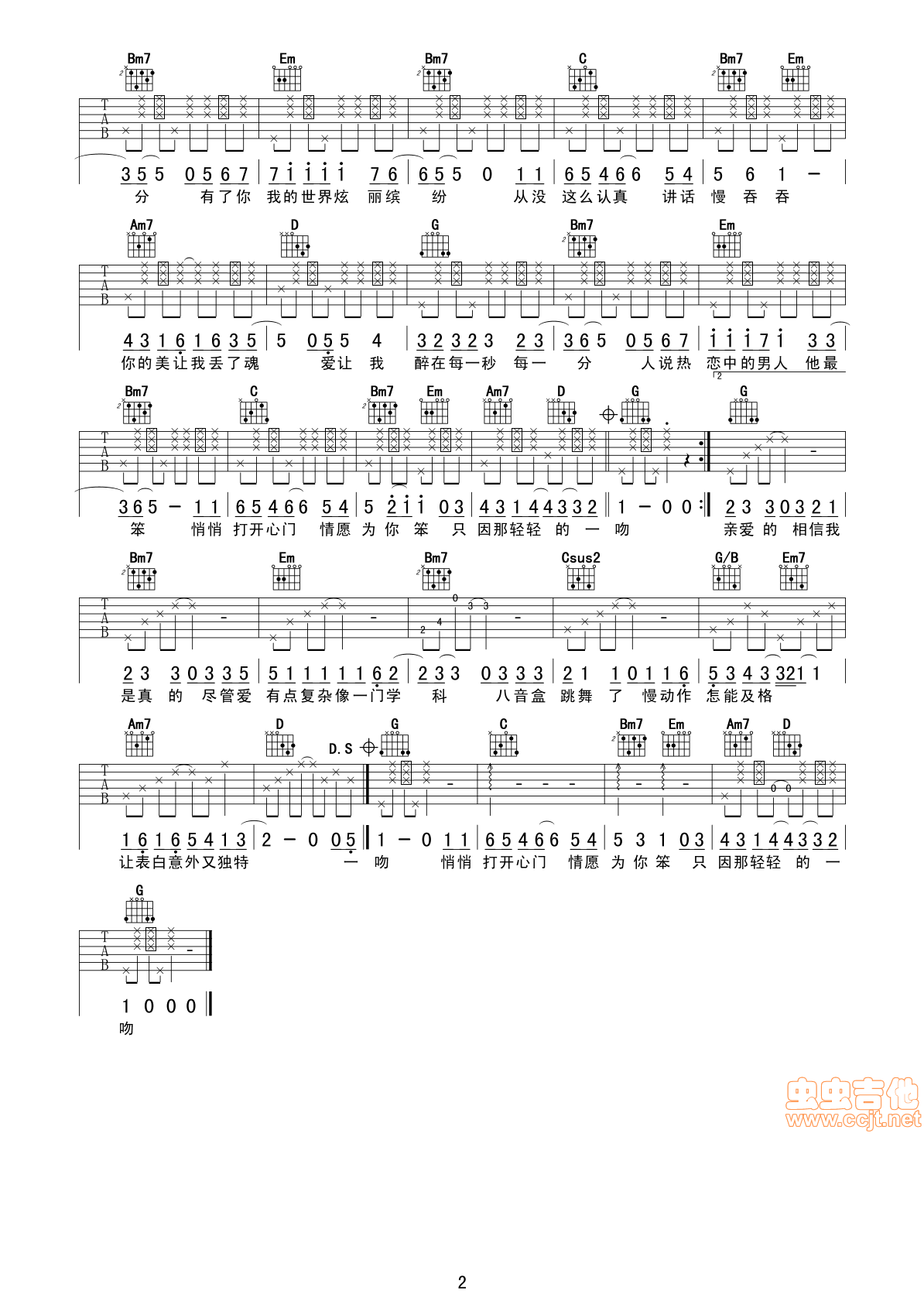 曲谱介绍: 《爱在每一秒》吉他弹唱谱,共有2张高清图谱,免翻页排版设计。