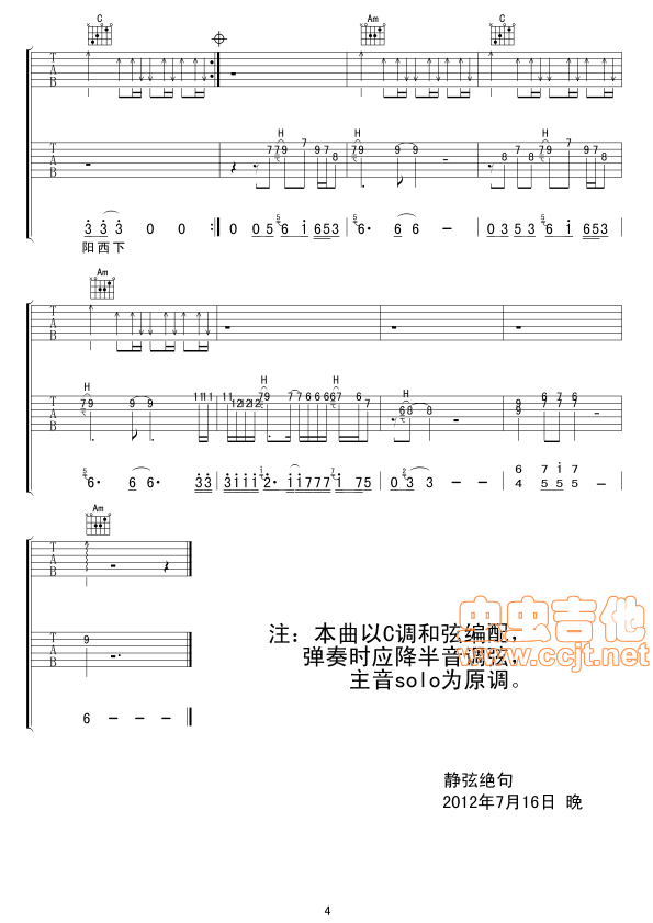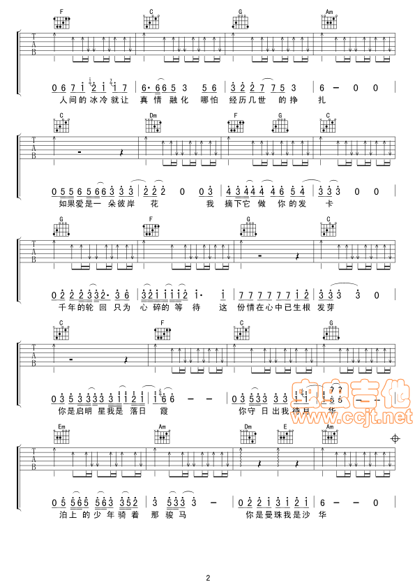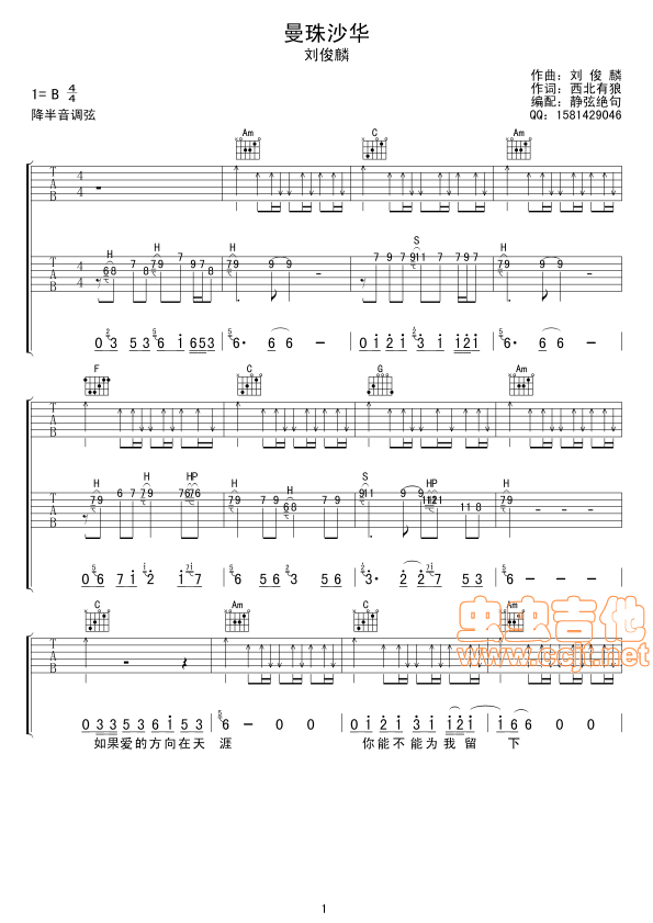 曲谱介绍: 《曼珠沙华》吉他弹唱谱,共有4张高清图谱。