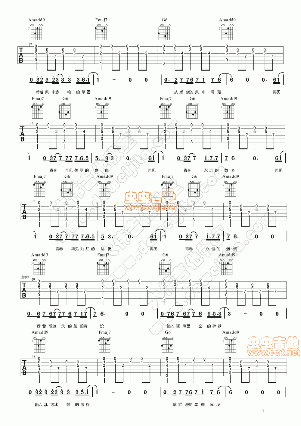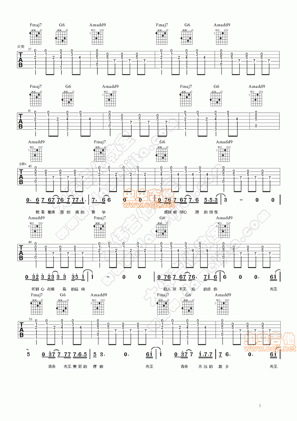 当前位置:琴谱网>吉他弹唱>再见青春