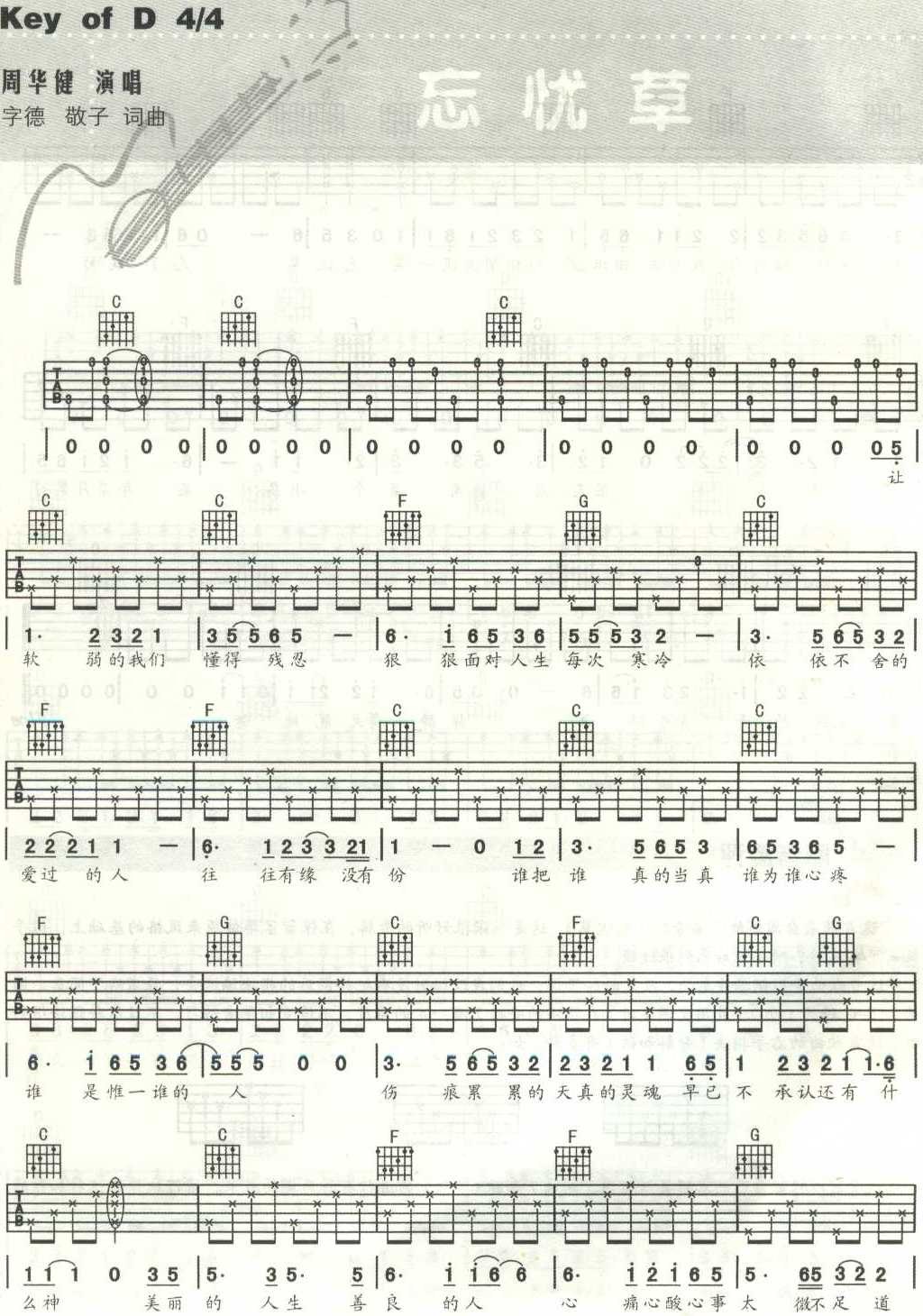 忘忧草1234吉他谱 - 吉他弹唱谱
