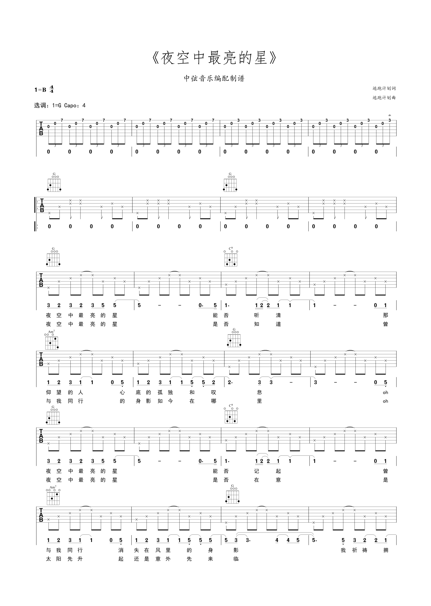 • 夜空中最亮的星吉他谱 - 逃跑计划 - G调吉他弹唱谱第1张