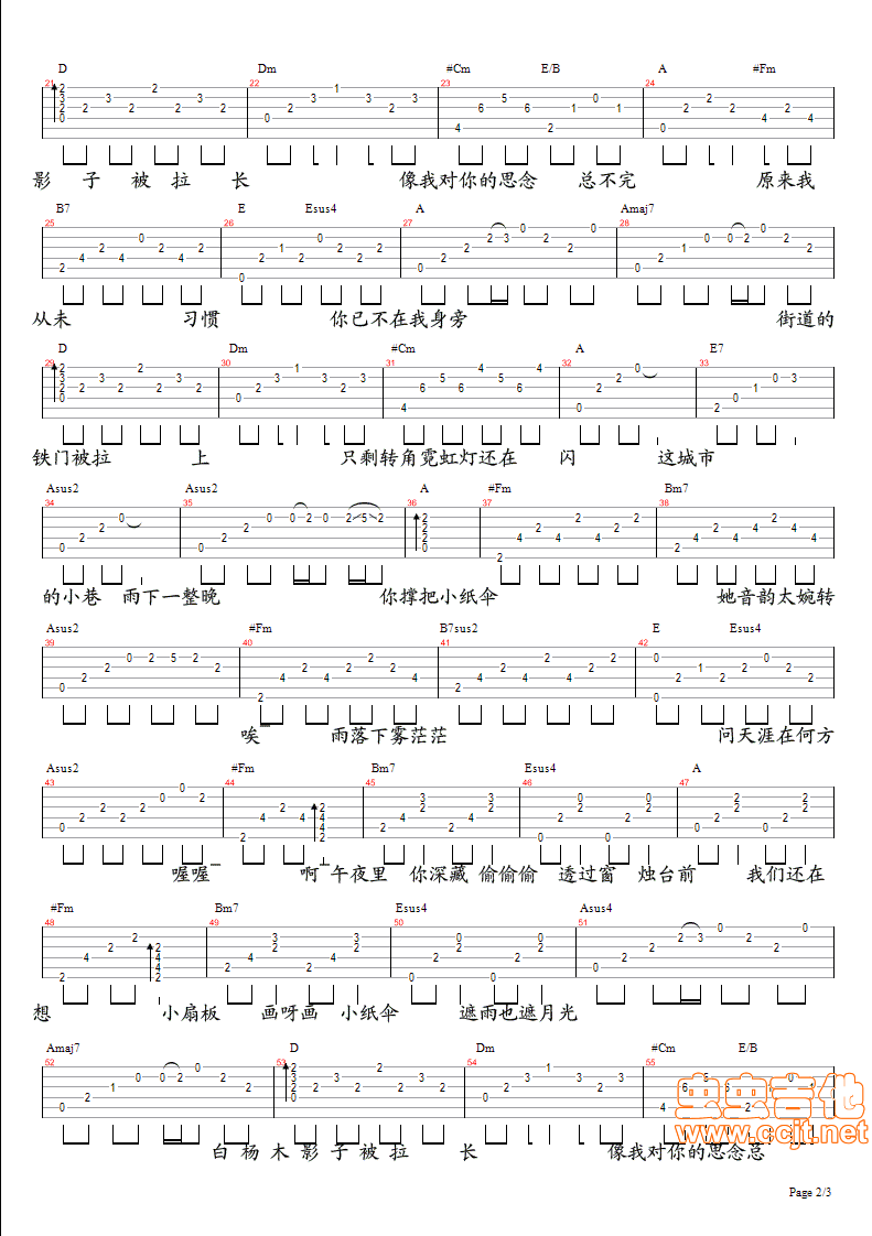 雨下一整晚 周杰伦吉他谱 - 雨下一整晚 - 吉他弹唱谱