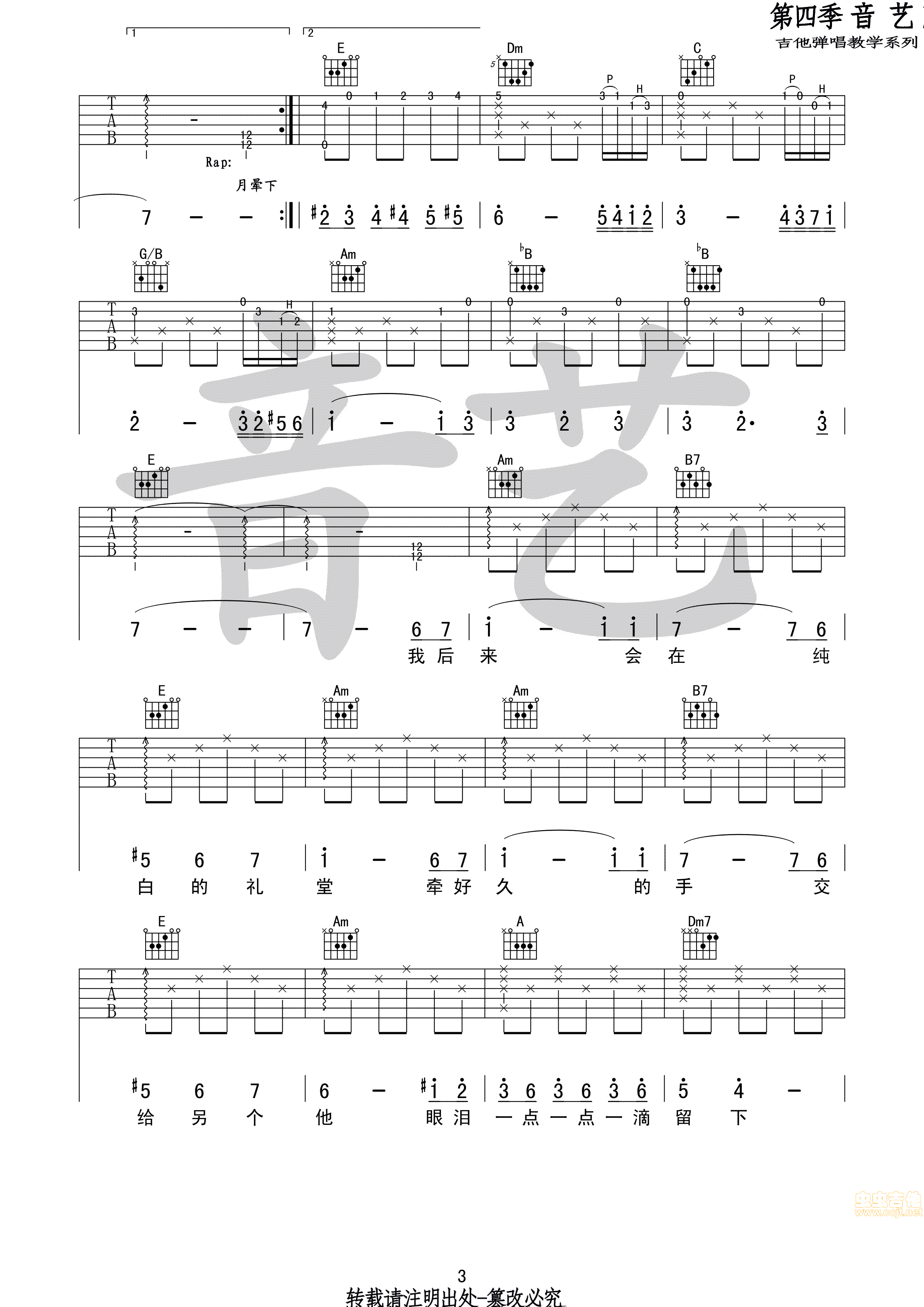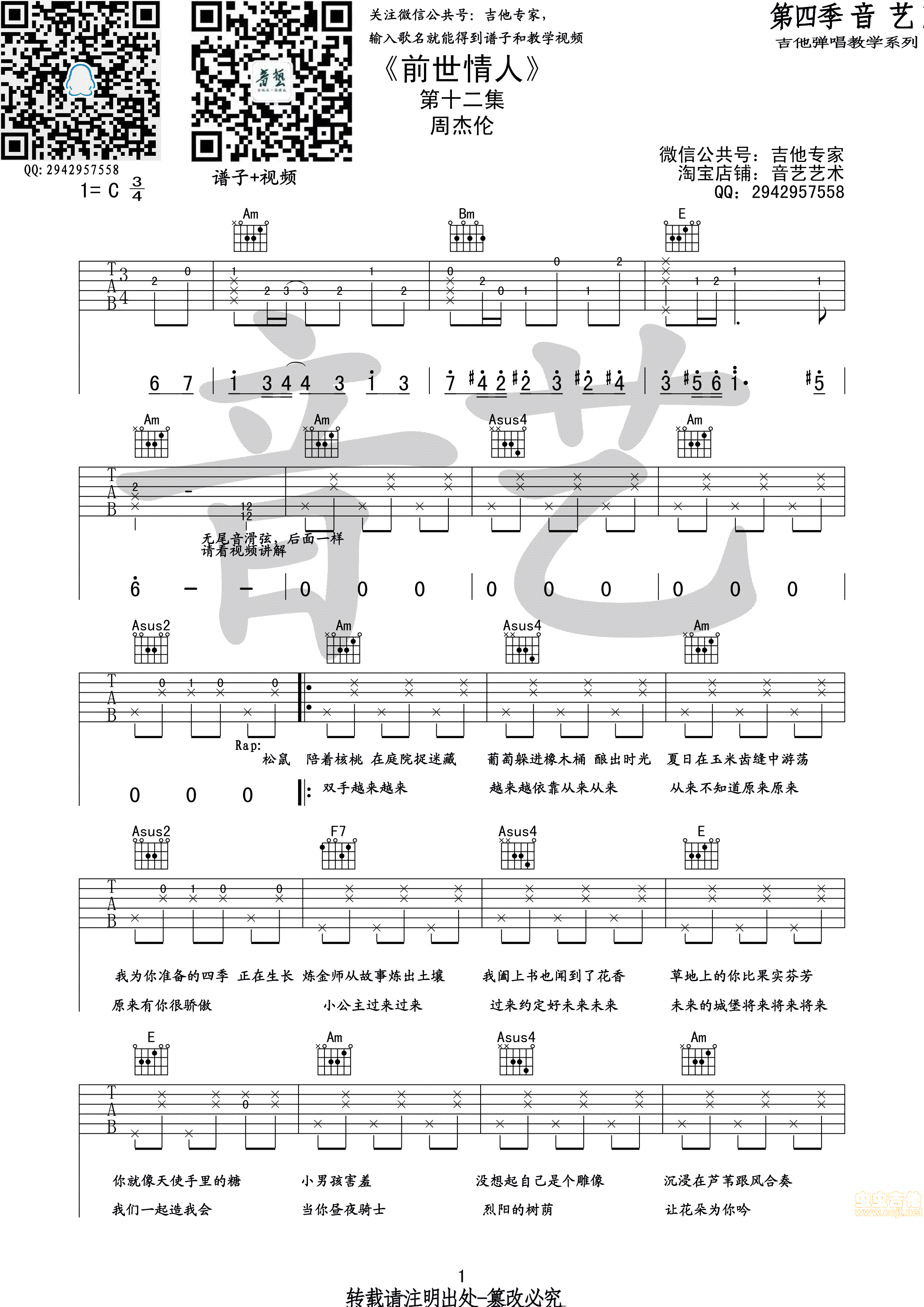 曲谱介绍: 前世情人《前世情人周杰伦原版》吉他弹唱谱原版,共有4张高清图谱。