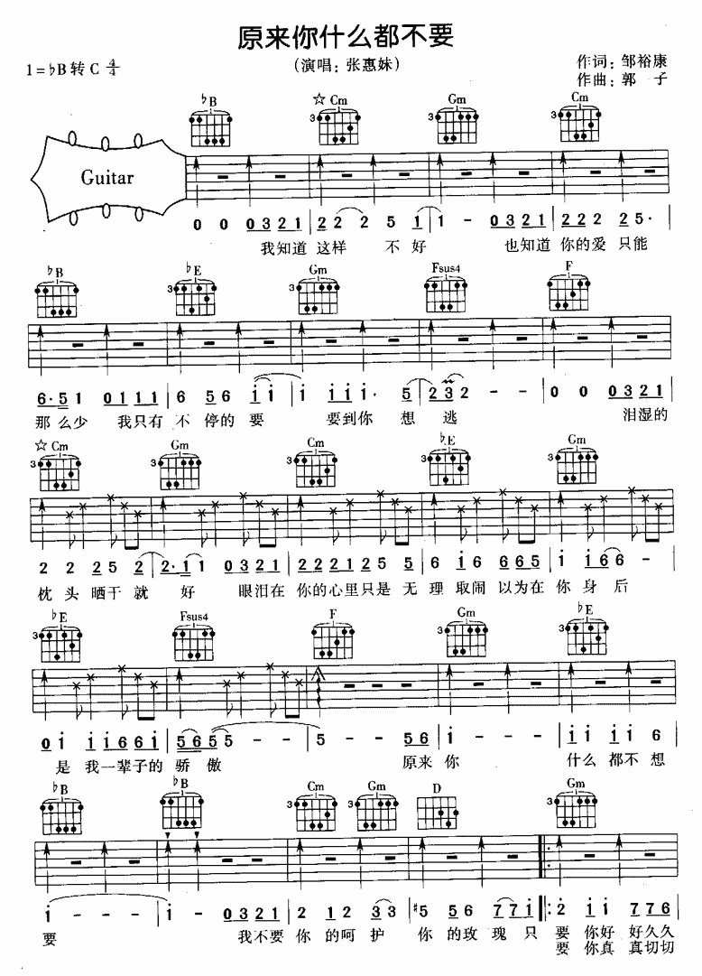 原来你什么都不想要吉他谱 - 吉他弹唱谱