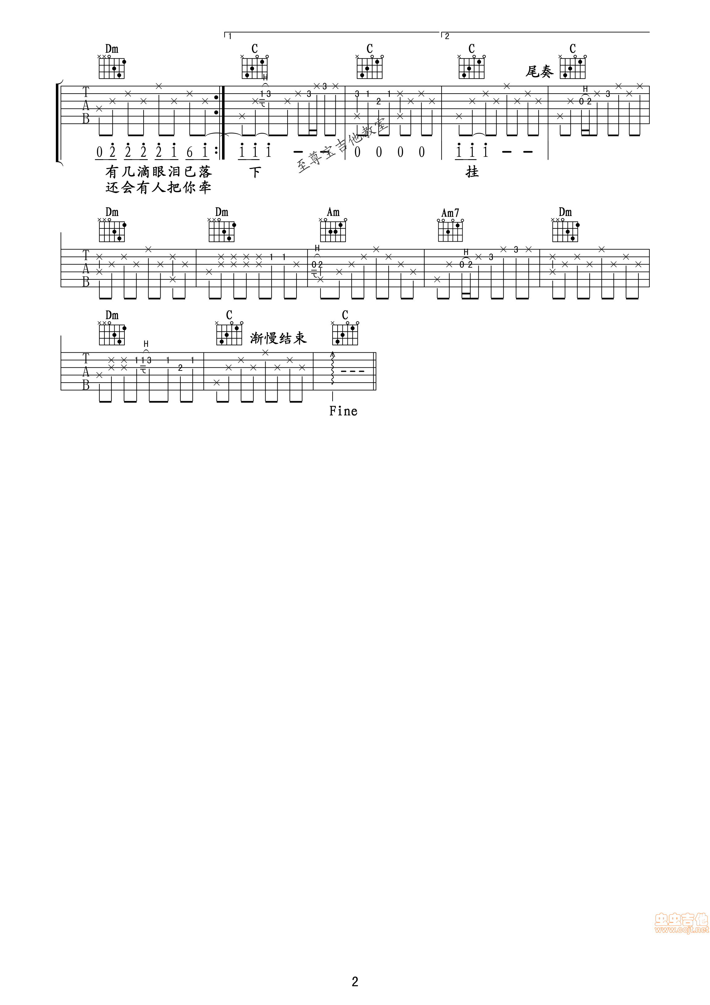 曲谱介绍: 《北京爱情故事》吉他弹唱谱,共有2张高清图谱,免翻页排版设计。